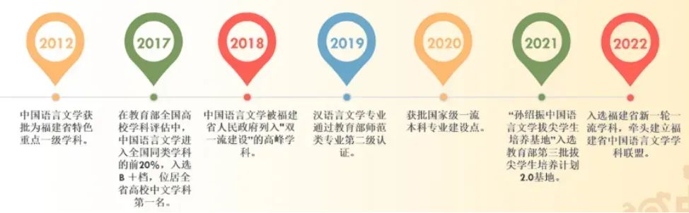 学院坚持一流专业建设促进一流学科发展。1981年,中国古代文学、中国现当代文学专业获批国家首批硕士点;1992年,中国语言文学之“中国文学”获批福建省重点学科,2003年,中国语言文学成为全校首个一级学科博士学位授权点;2007年,中国现当代文学成为全校唯一的国家重点学科;2012年,中国语言文学获批福建省特色重点一级学科;2017年,中国语言文学入选福建省首批高峰学科;2019年,汉语言文学入选首批国家级一流本科专业建设点;2022年入选福建省第二轮“双一流”建设主干学科,牵头建立福建省高校中国语言文学学科联盟;2024年入选省一流学科培优计划;在教育部第四轮、第五轮学科评估中位居全国同类学科B+,在福建省同类学科排名第一,在软科2024年“中国最好学科排名”中,位居第14名,全国排名前12%。