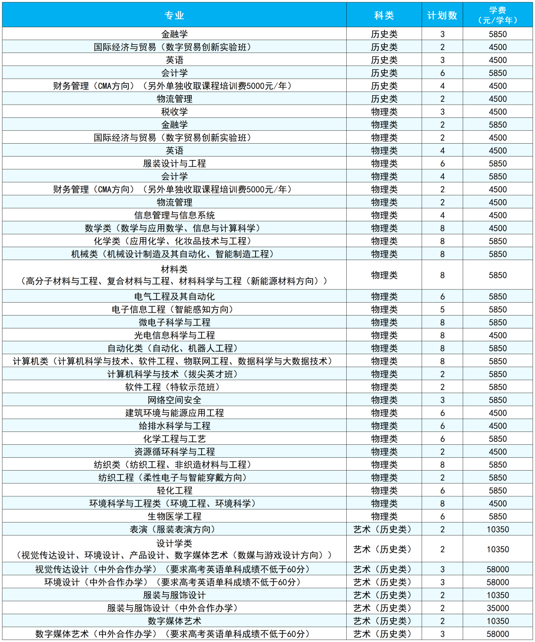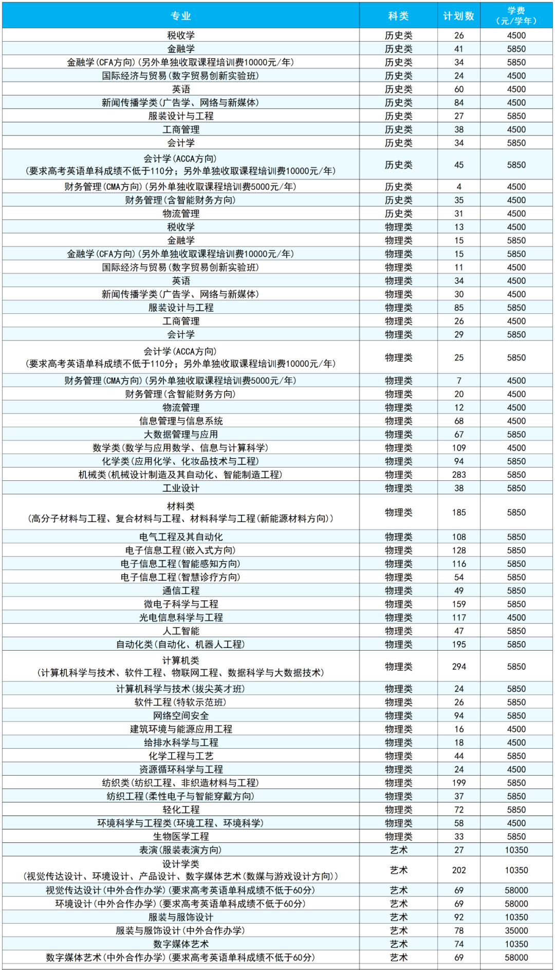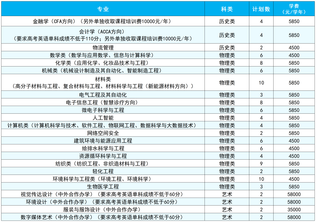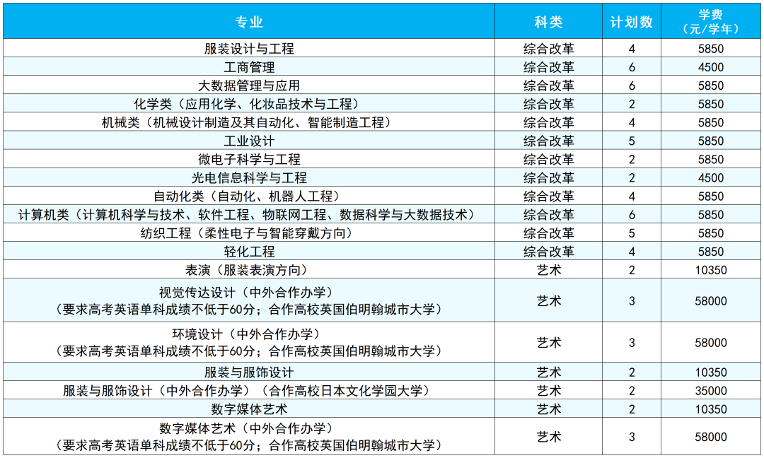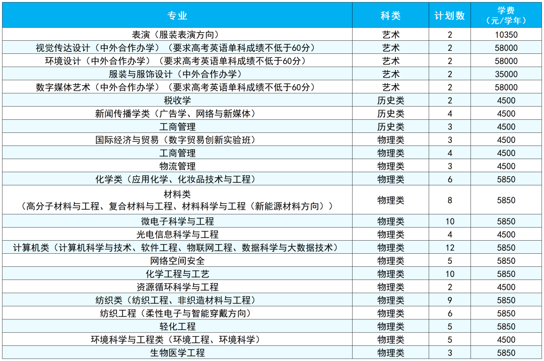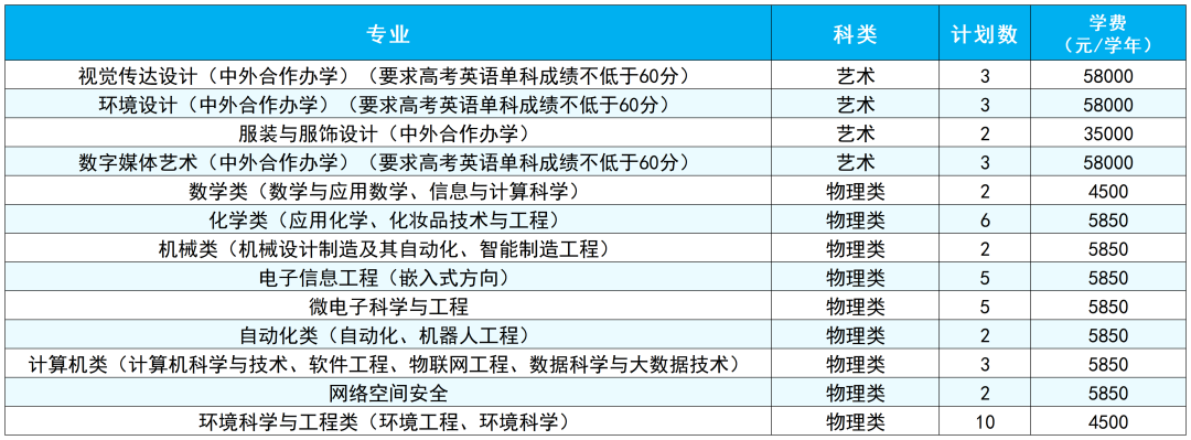 备注:最终招生计划数以省级招生考试主管部门公布为准,最终学费以学校官网公示为准。