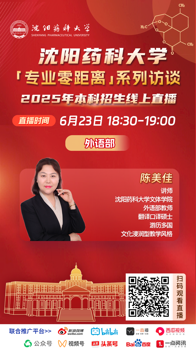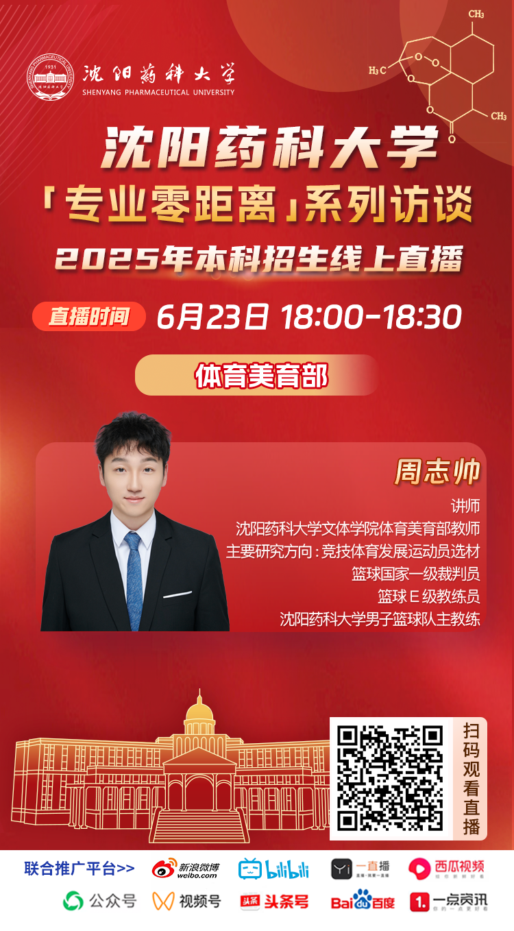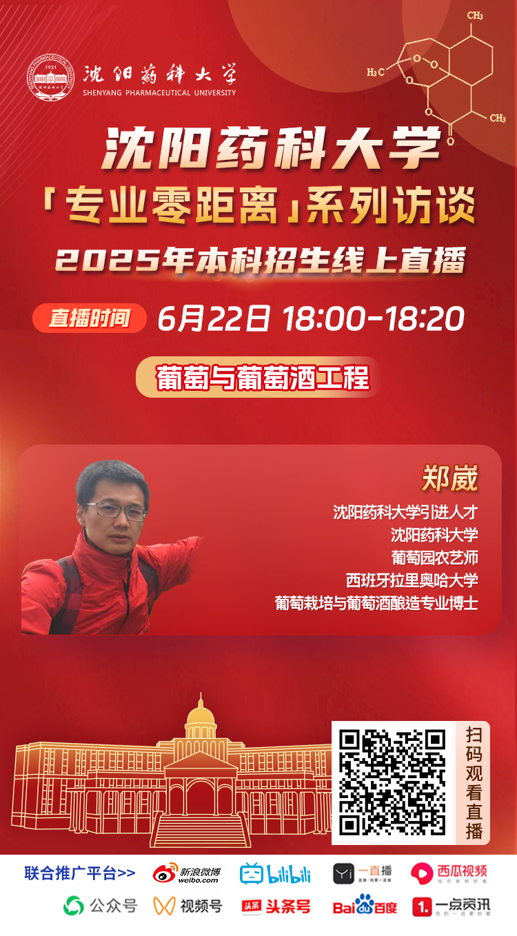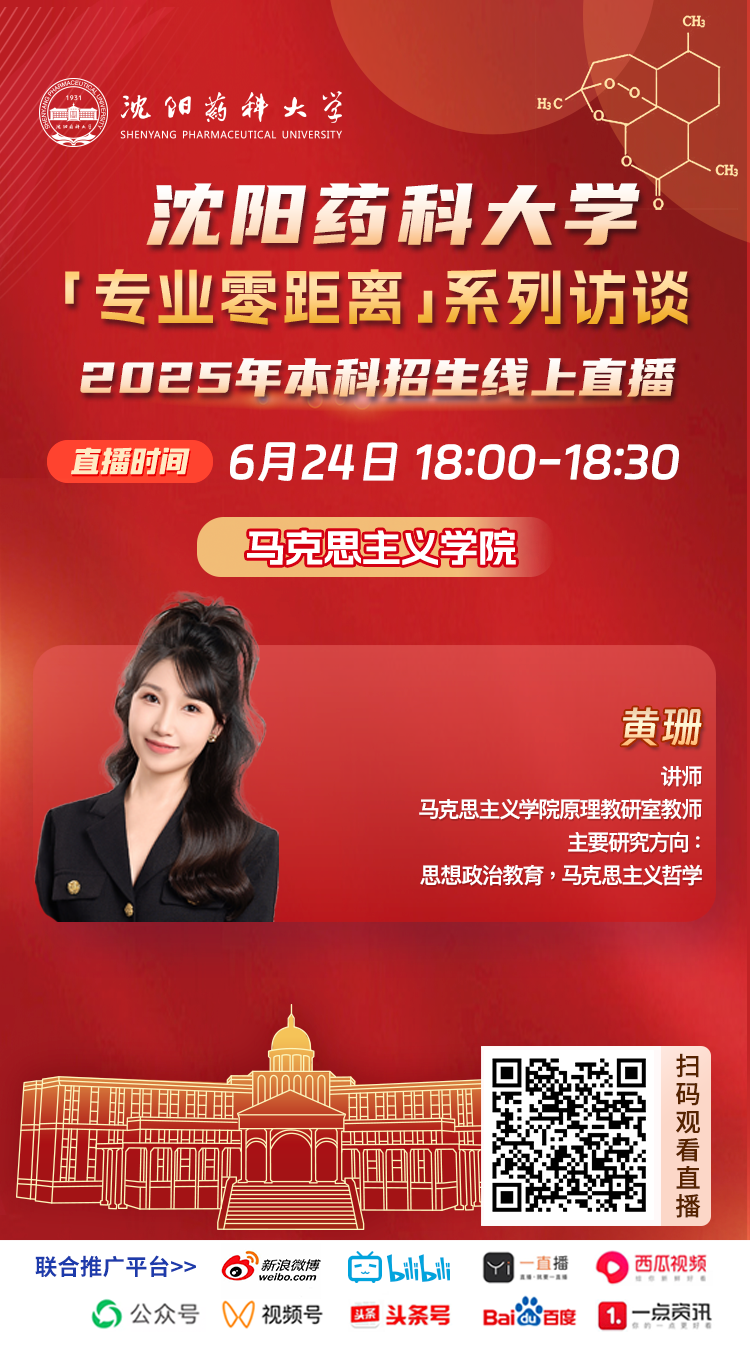 直播预告|沈阳药科大学2025年本科招生线上直播(功能食品与葡萄酒学院、文体学院、马克思主义学院)