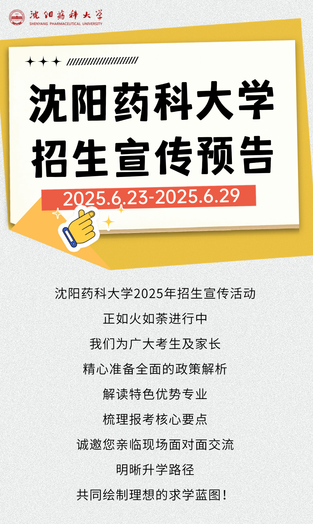 招宣预告 | 沈阳药科大学近期线下招生宣传日程(6.23-6.29)