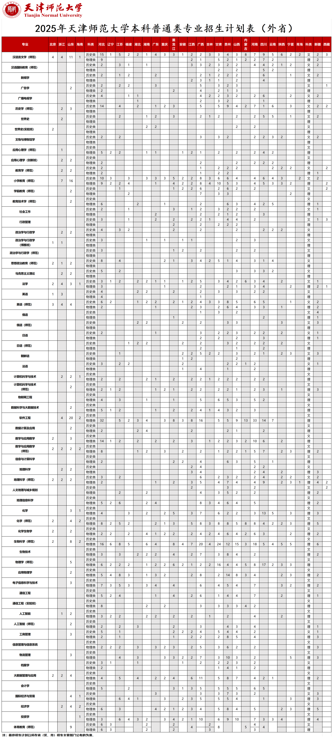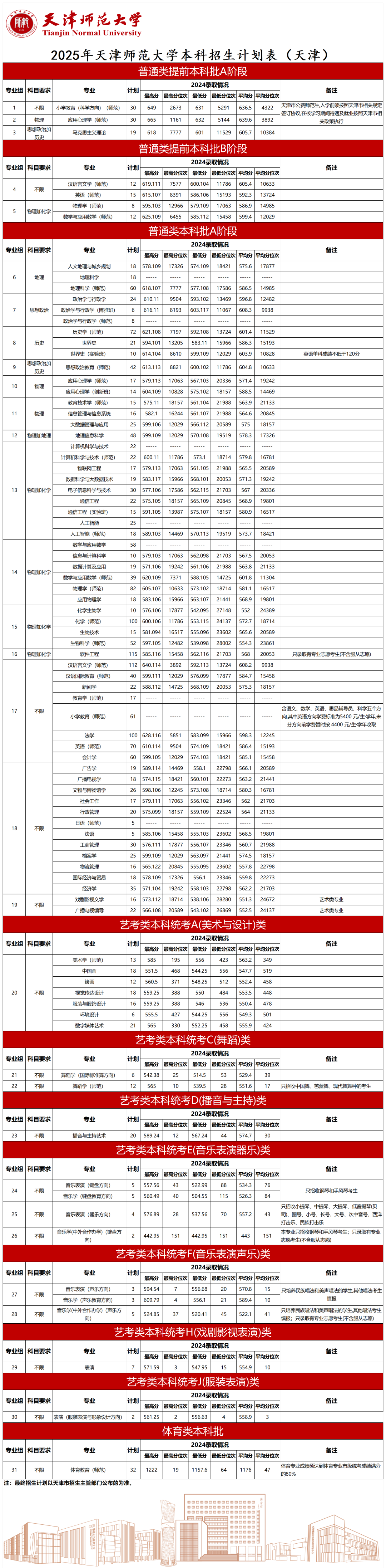 2025年,天津师范大学将继续扩大招生规模,计划扩招40人,招生规模将达到6641人,本科招生新增9个专业(方向):政治学与行政学(师范)、俄语(师范)、日语(师范)、舞蹈学(师范)、计算机科学与技术、人工智能、地理科学、化学、数学与应用数学。诚挚邀请各位怀揣教育理想与学术追求的优秀学子加入天师大的大家庭!