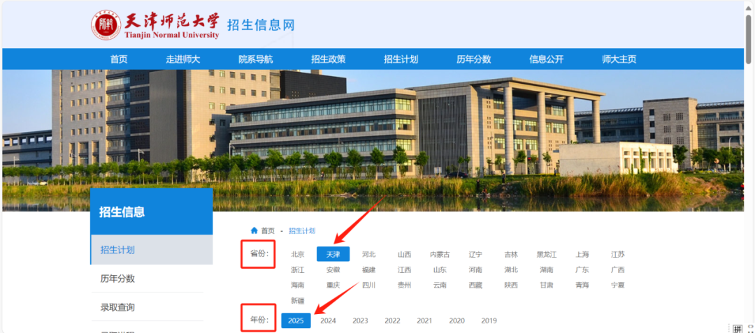 获取更多招生信息,请登录天津师范大学招生信息网(http://zsb.tjnu.edu.cn/)——选择“招生计划”——选择所在省份、年份、科类、类型,即可获得更具体的招生计划信息!