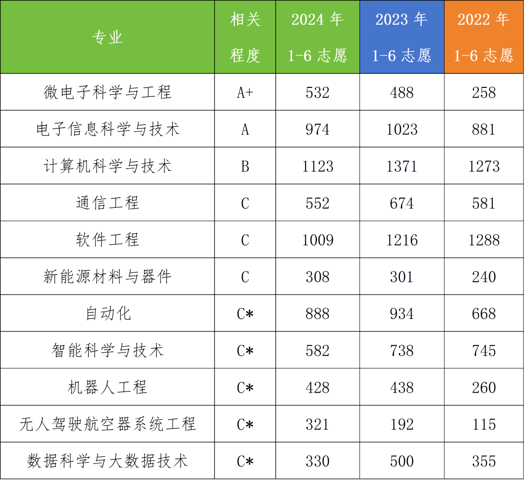 ▲2022-2024年11个集成电路相关专业1-6志愿报考情况