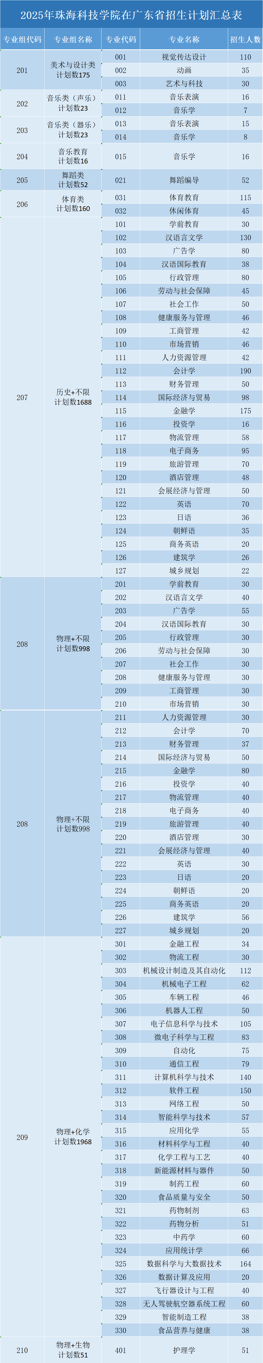 ▲2025年珠海科技学院在广东省内招生计划汇总表