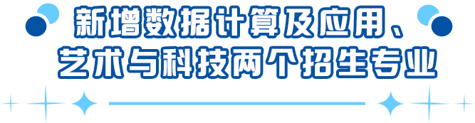 在“数字中国”“文化强国”“人工智能+”等国家战略推动下,数据计算、科技与艺术深度融合成为文化产业发展的新趋势。2025年起学校新增数据计算及应用、艺术与科技两个招生专业。其中,数据计算及应用专业在广东省招生20人、在省外招生39人;艺术与科技专业在广东省招生30人、在省外招生31人。