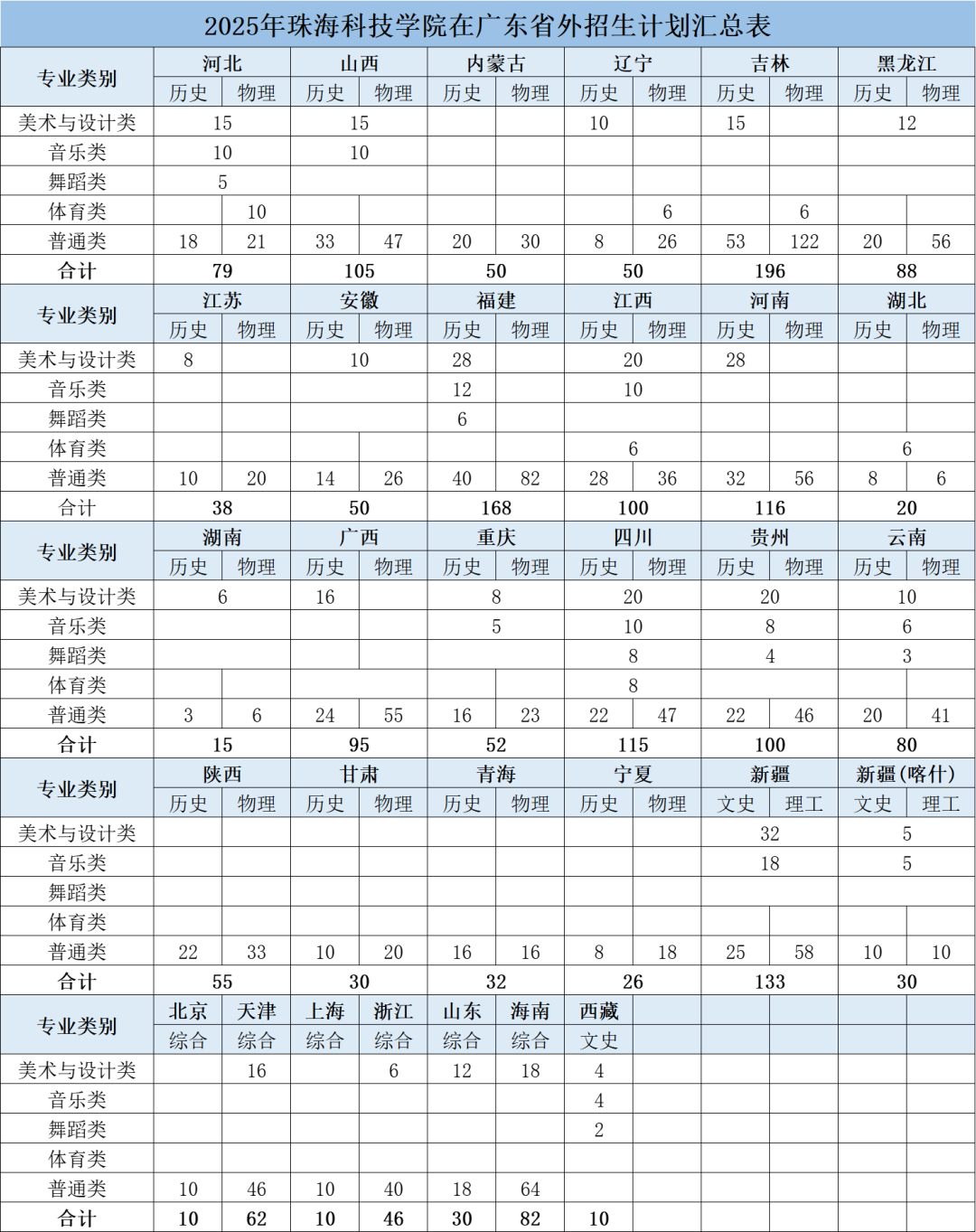 ▲2025年珠海科技学院在广东省外招生计划汇总表