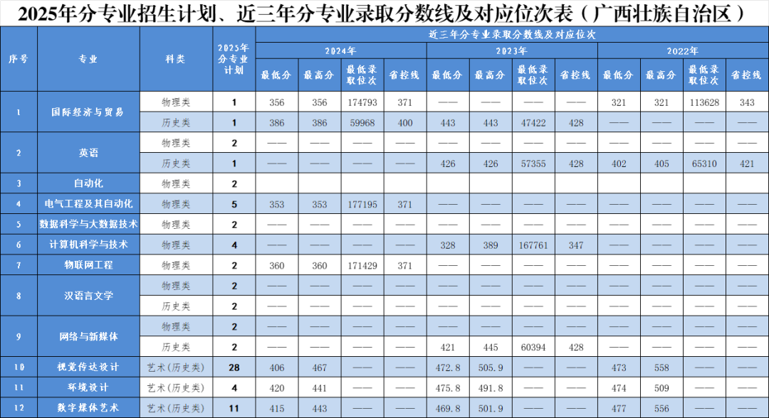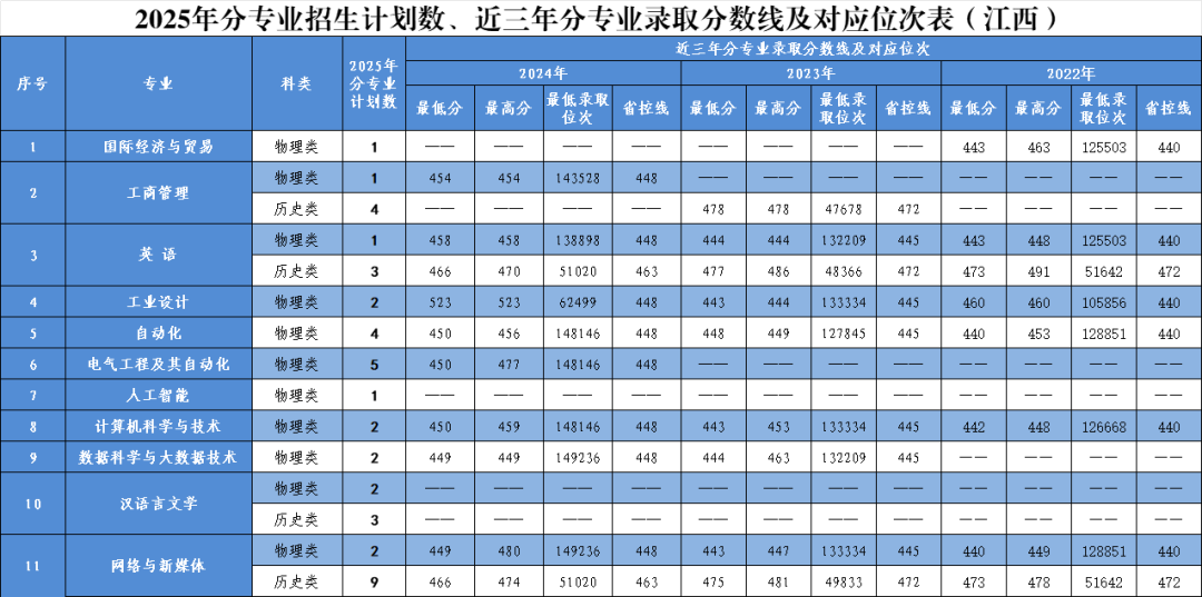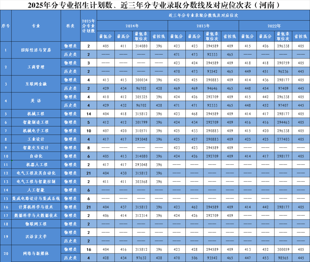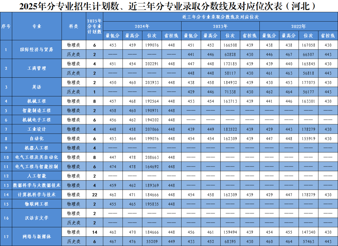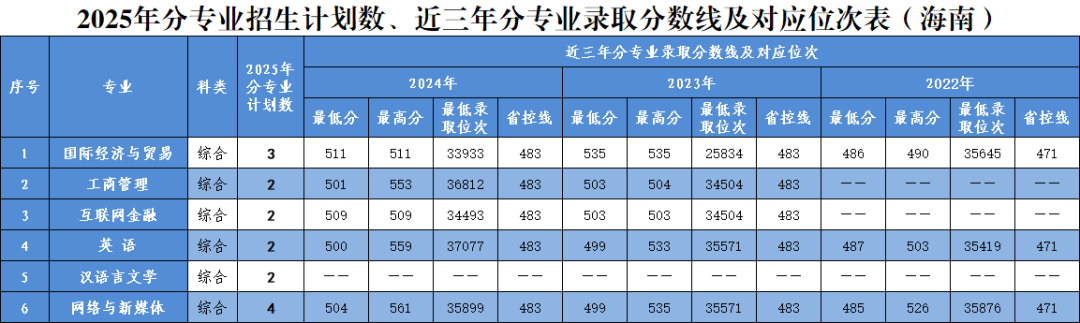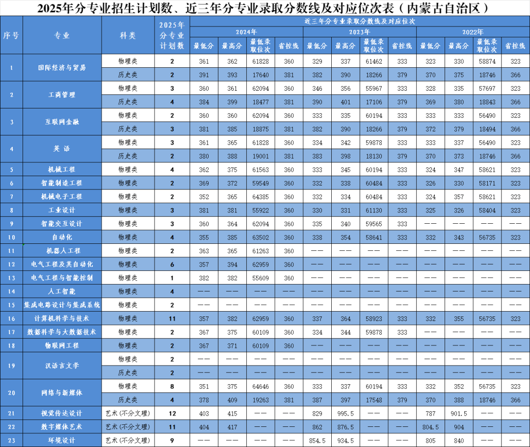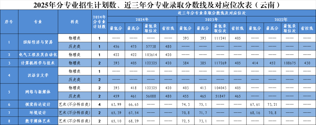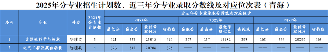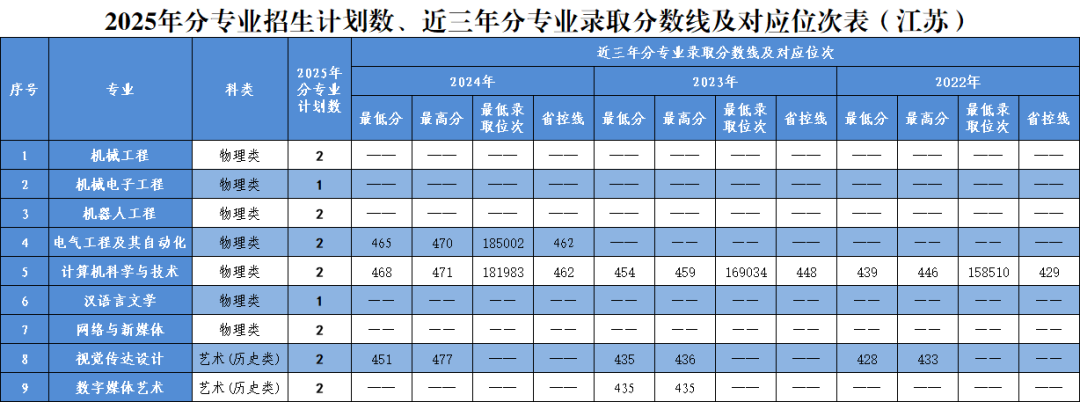 2025年分省分专业招生计划及近三年录取情况