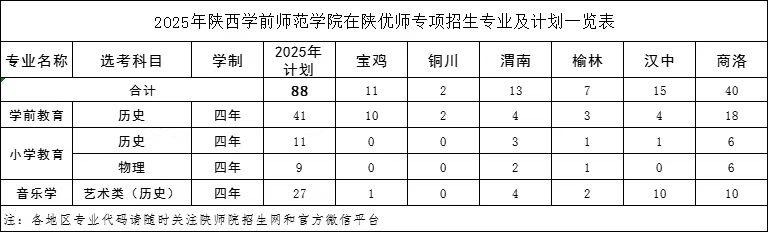 1.招生地区:2025年面向陕西省的铜川、宝鸡、渭南、榆林、汉中、商洛6个地市招收本科定向就业师范生。