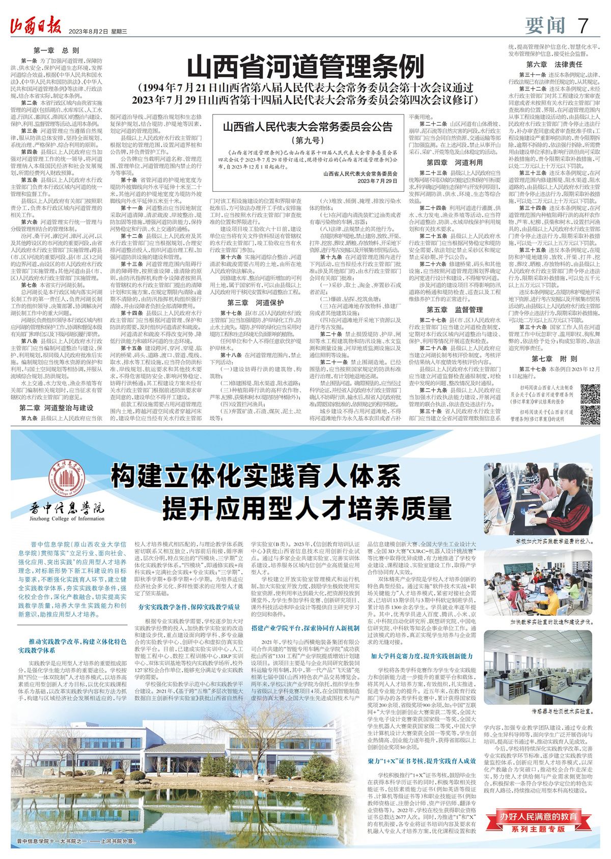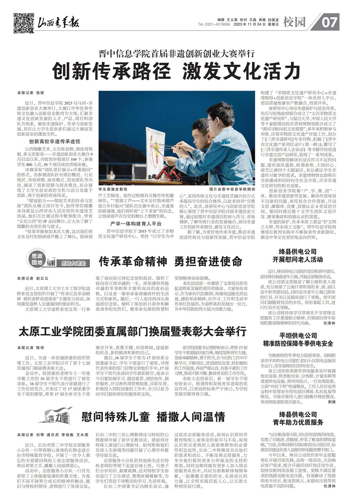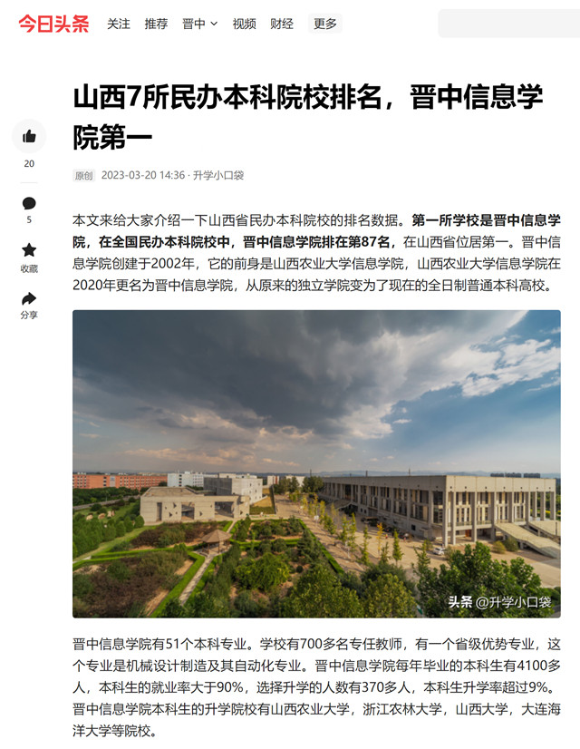 近两年,《光明日报》《中国教育报》《中国青年报》《山西日报》《山西青年报》等主流媒体纷纷聚焦学校全员书院制教育教学改革取得的巨大成果,全力打造高水平应用型本科大学的各项亮点工作。学校连续荣登山西民办高校排行榜第一对于学校持续深化“四位一体双院制”人才培养模式,奋力建设全国最受尊崇的特色本科大学具有积极的促进作用。