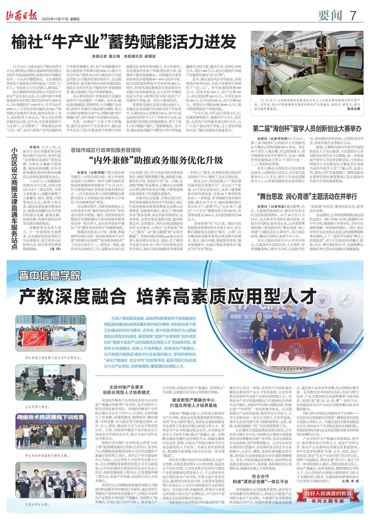 晋中信息学院创新构建了“四位一体双院制+特色课程”的办学理念,坚持一切以学生为本的素质教育模式,在不同的赛道上培养出了一批又一批富有领导力、创造力、想象力、高情商的管理者、经营者,取得很大成功,社会影响力持续提升。