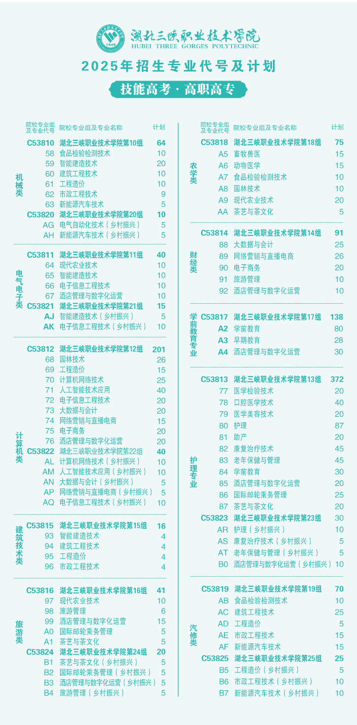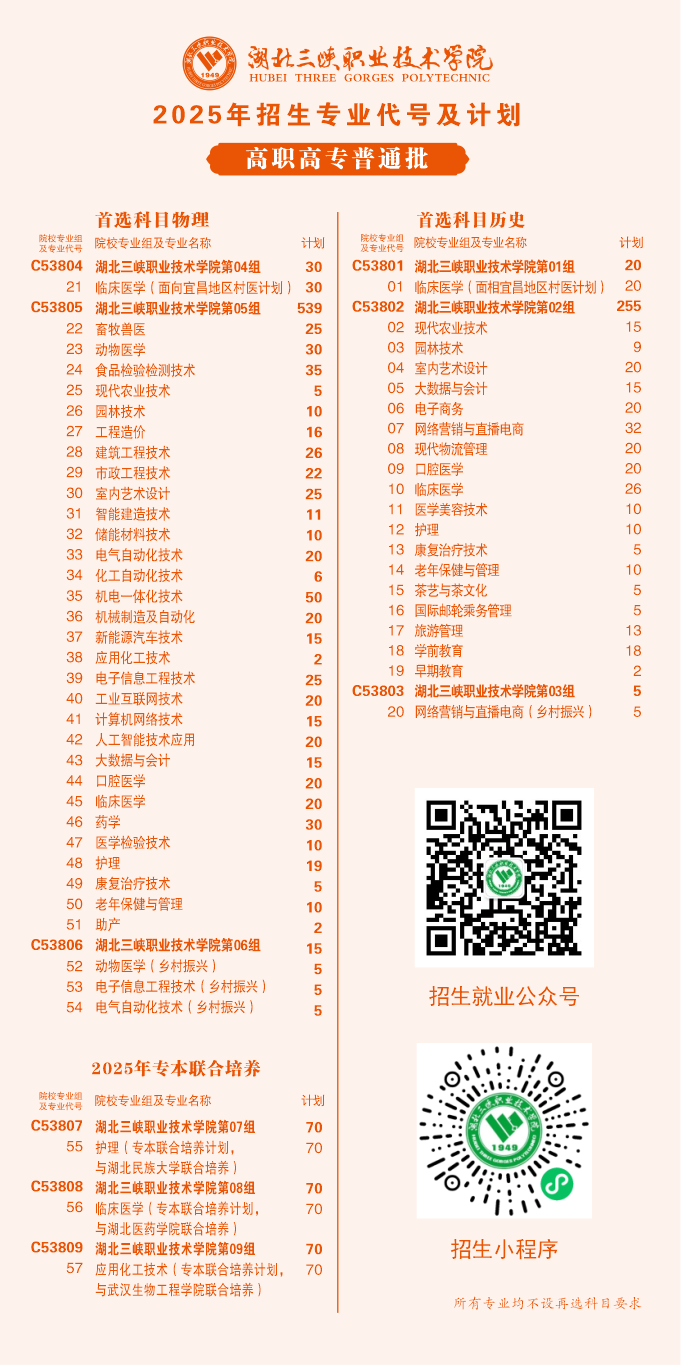 2025年招生专业代号及计划