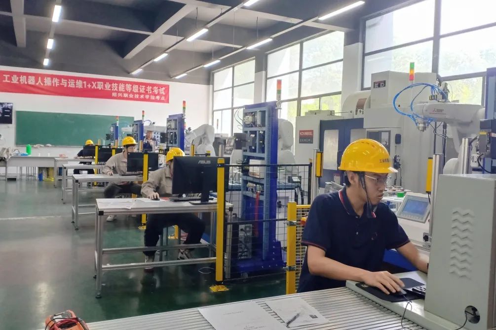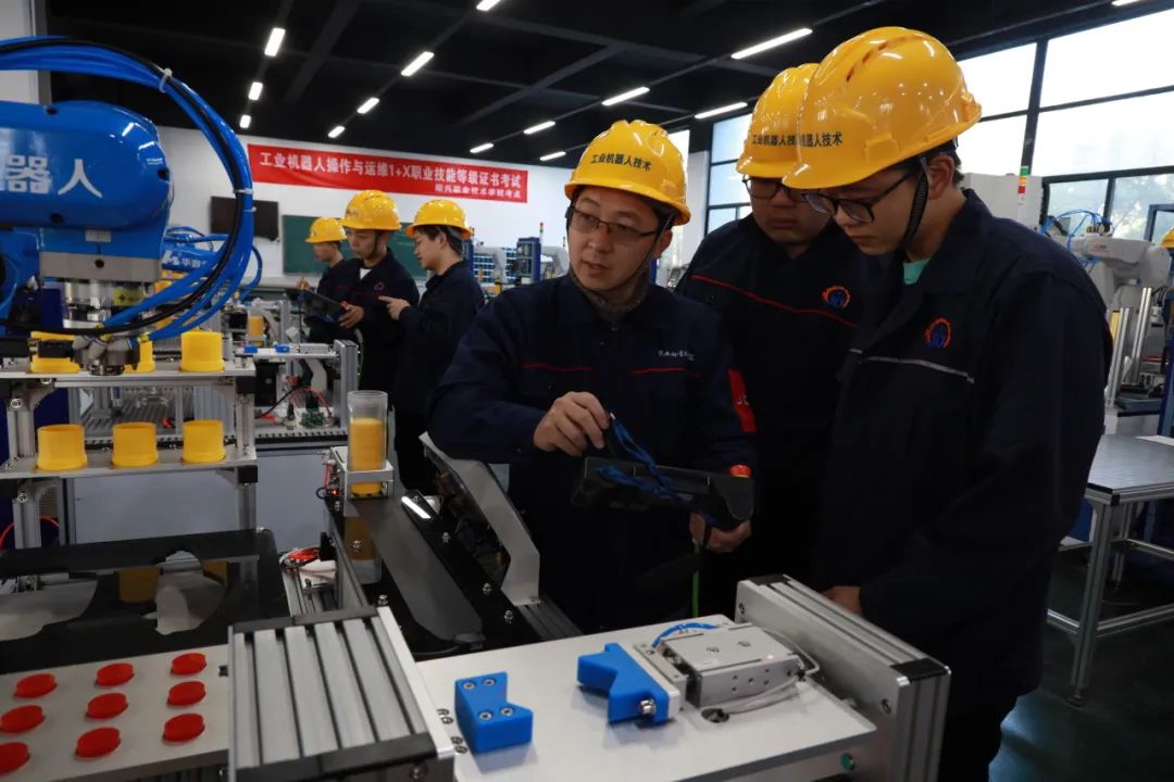 与浙江精工集成科技股份有限公司等企业建立了校企合作关系,设立了工业机器人操作与运维1+X证书考核站点、工业机器人系统操作员证书考点等,结合岗位要求及技能证书标准,将课程内容与职业标准对接、教学过程与生产过程对接,依照“认识学习—仿真学习—现场学习”的递进式学习路径,培养学生的专业技术技能及职业素养。