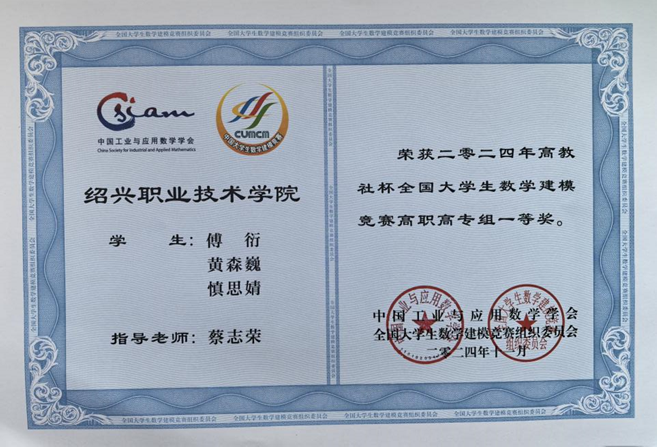 ▲ 2024年获得全国大学生数学建模竞赛一等奖