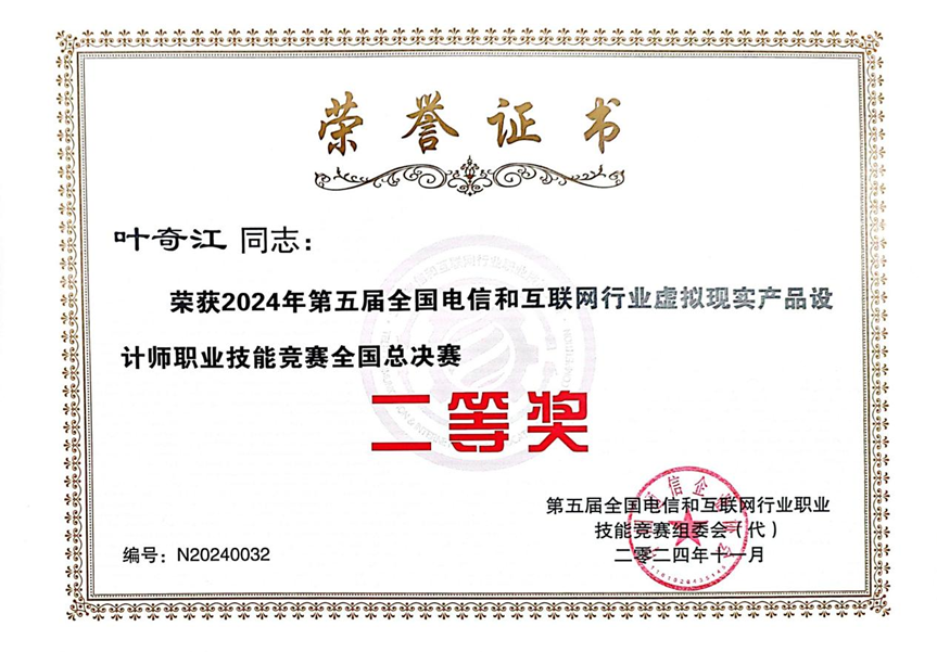 在浙江省第十三届大学生电子商务竞赛暨全国“挑战杯”浙江分赛区选拔赛中,我校共获6项一等奖,该专业独揽其中3项;还在全国总决赛中斩获一等奖。在2021-2023年的中国虚拟现实大赛中,专业获得全国一等奖1项、二等奖3项。2024年第五届全国电信和互联网行业虚拟现实产品设计师职业技能竞赛全国总决赛中,专业又获得全国一等奖1项、二等奖1项。