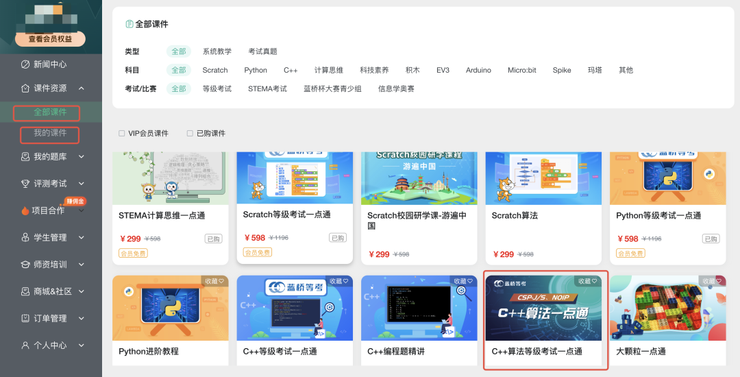 02点击【全部课件】【C++算法一点通】即可《C++等级考试算法一点通》难度严格按照历年CSP-J/S的标准设定。搭配对应等级考试体系,分为1至18级逐级进阶测评,帮助学生在信息学奥赛的学习中逐步成长,最终脱颖而出。