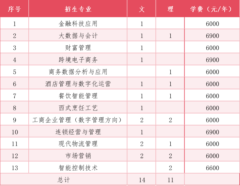 2025年重庆分专业招生计划表