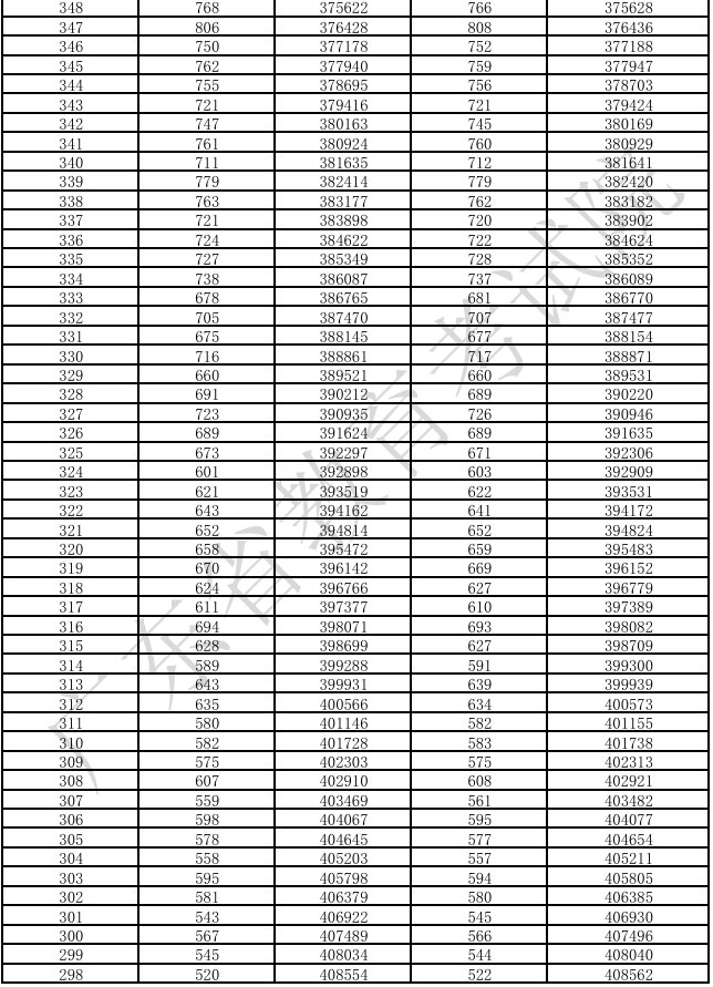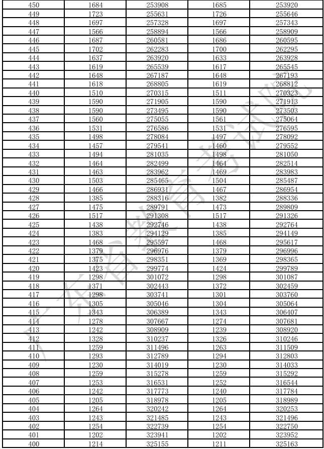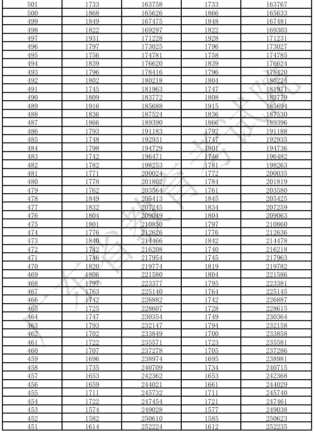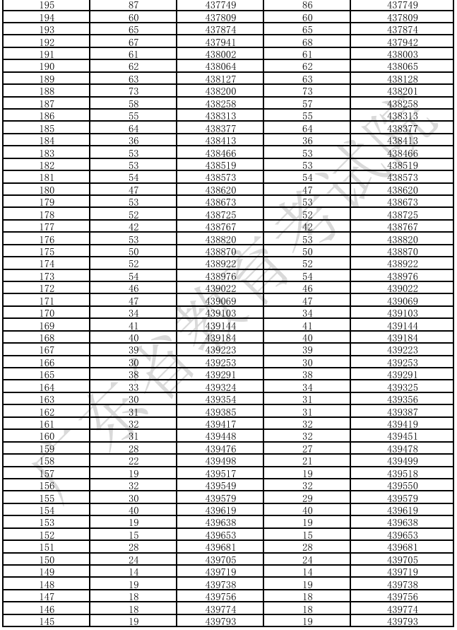 广东省2025年高考普通类(物理)分数段统计表(含本、专科层次加分)