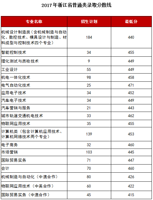 注:考生在查询2017年各专业录取分数线时,请特别注意2017年机械设计制造类(含:机械制造与自动化、数控技术、模具设计与制造、材料成型与控制技术)、计算机类(含:计算机应用技术、计算机网络技术)是按大类招生的,2018年将按各专业独立招生,我们估计今年的情况会有较大差异,去年的录取分数线仅供参考。