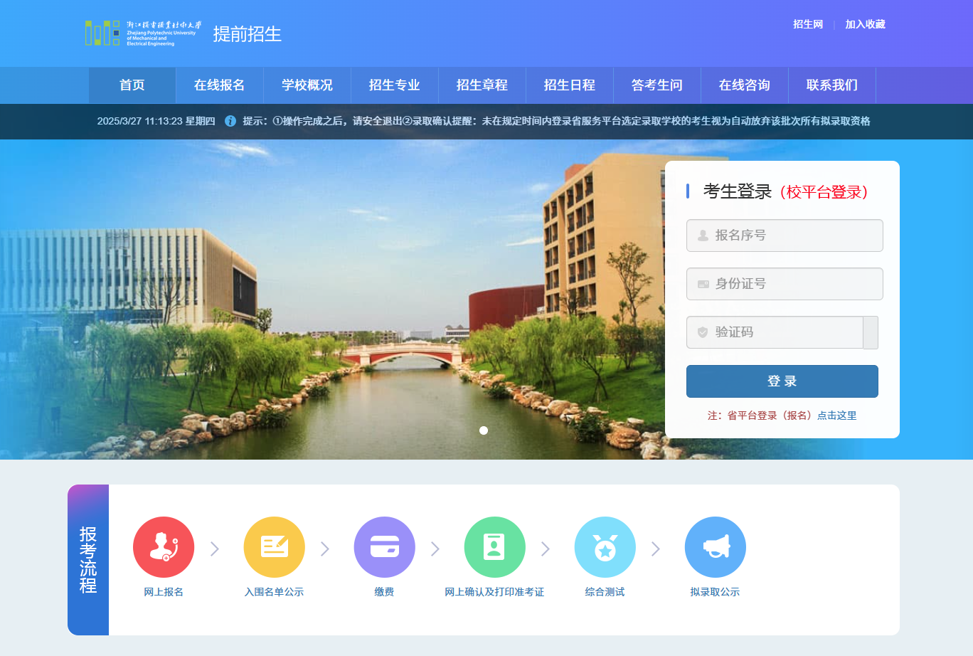 学校2025年提前招生报名已经结束,根据《浙江机电职业技术大学2025年高职提前招生章程》规定,现将入围分数线、入围查询、缴费及网上确认等有关事项公告如下: