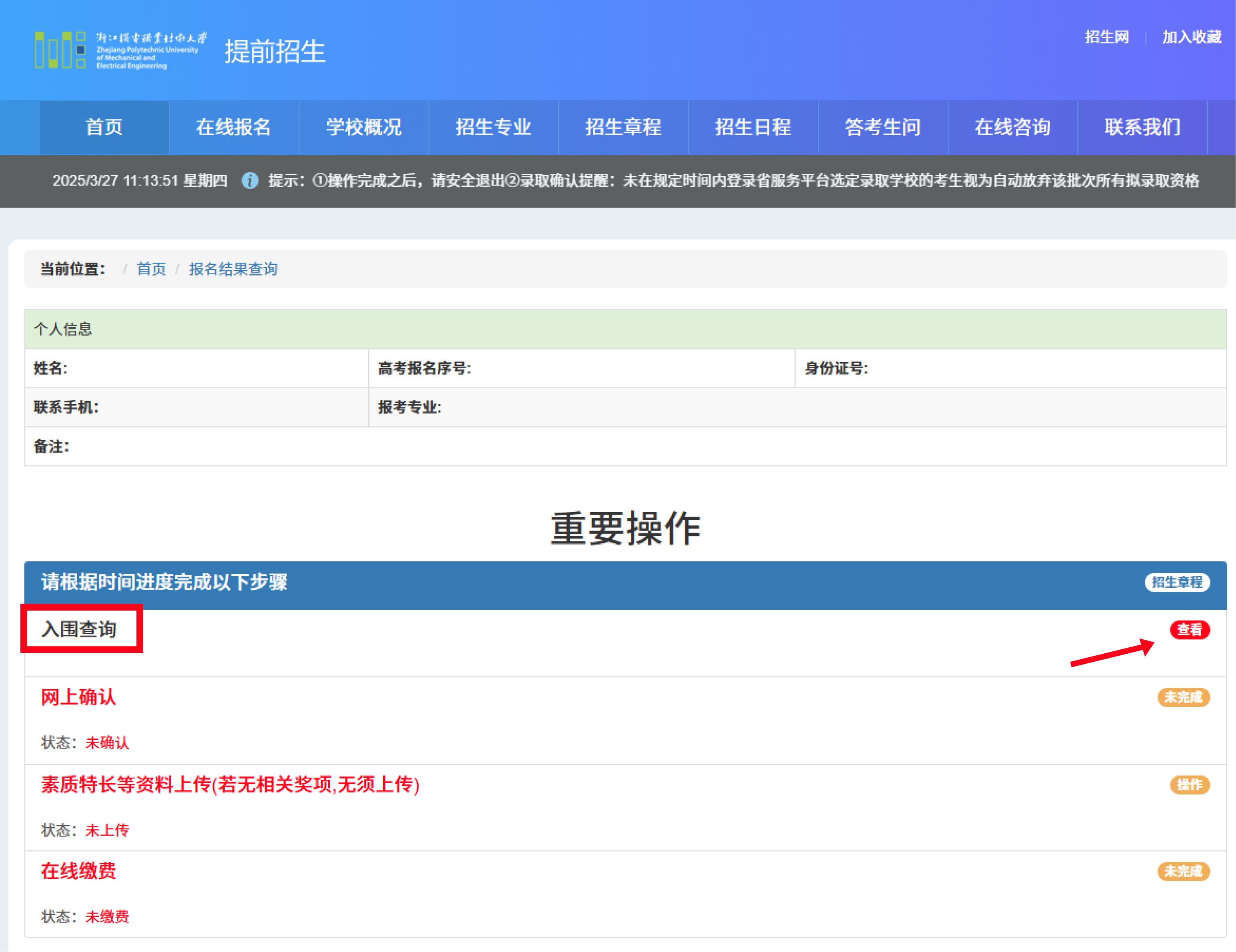 2.在【入围查询】页面查看是否入围