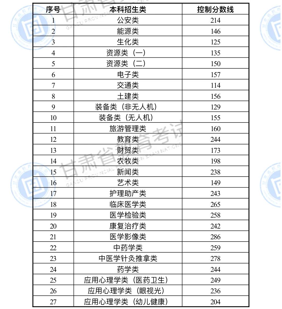 经研究审定,现将2024年甘肃省普通高校高职(专科)升本科统一考试招生录取控制分数线公布如下: