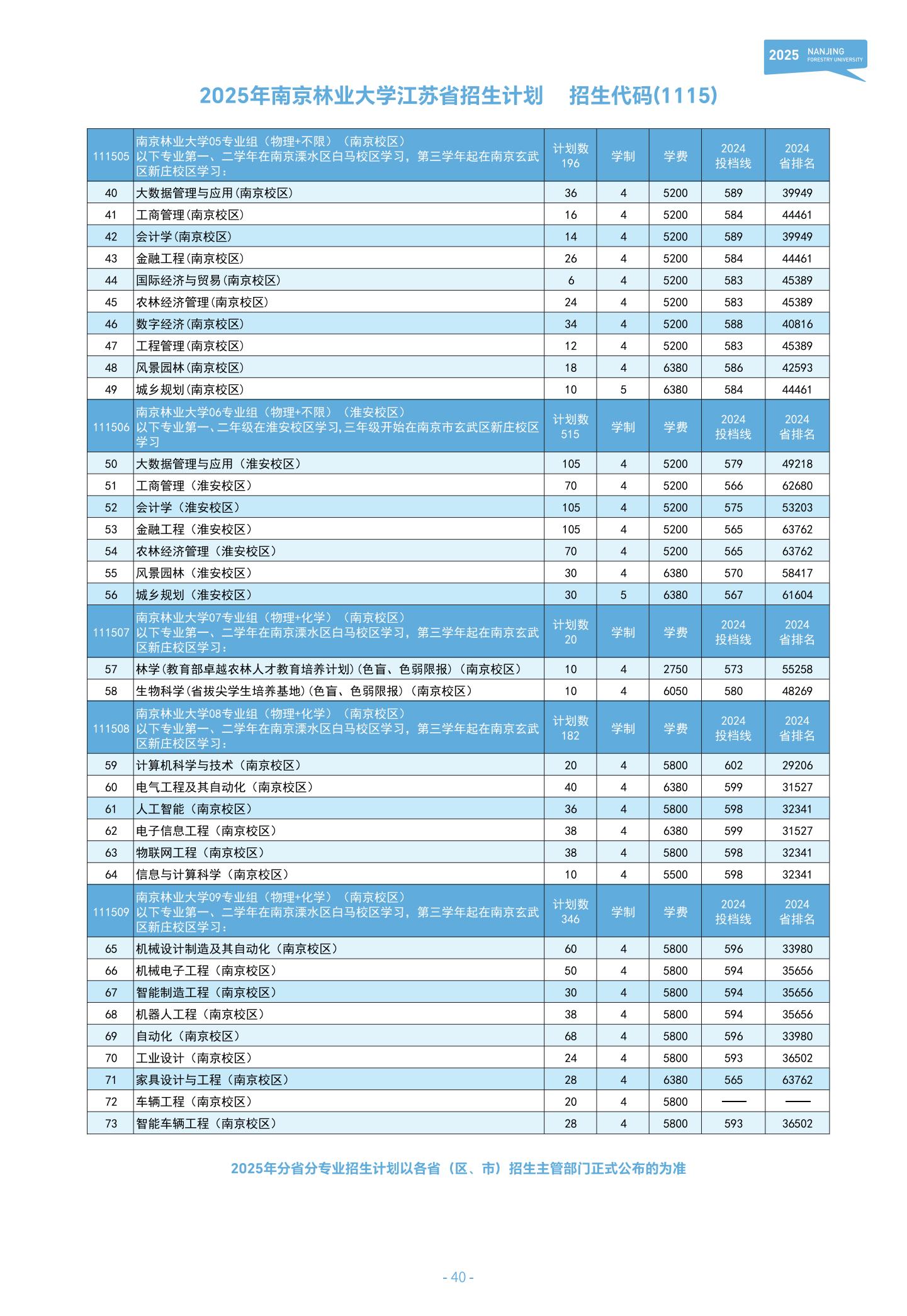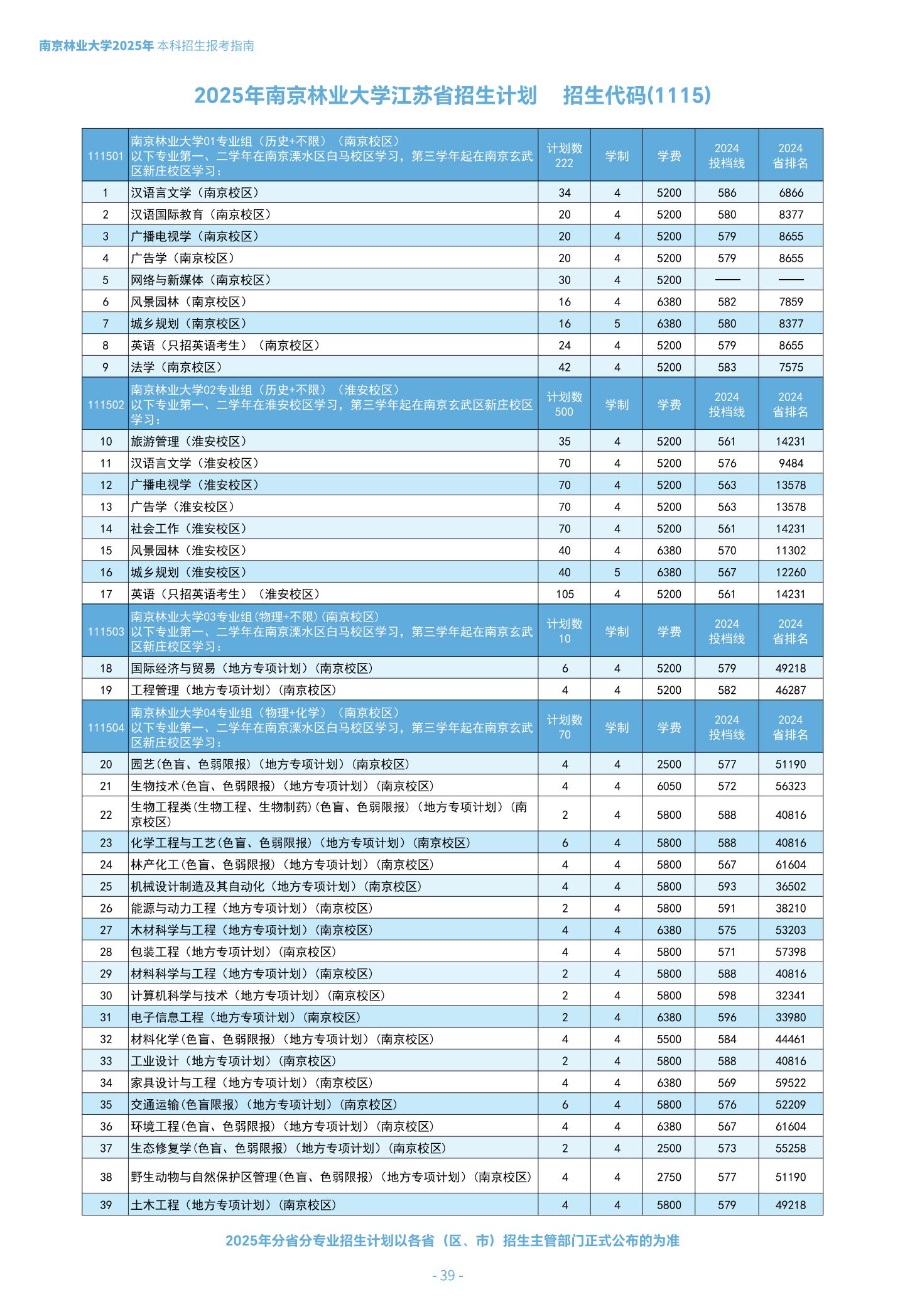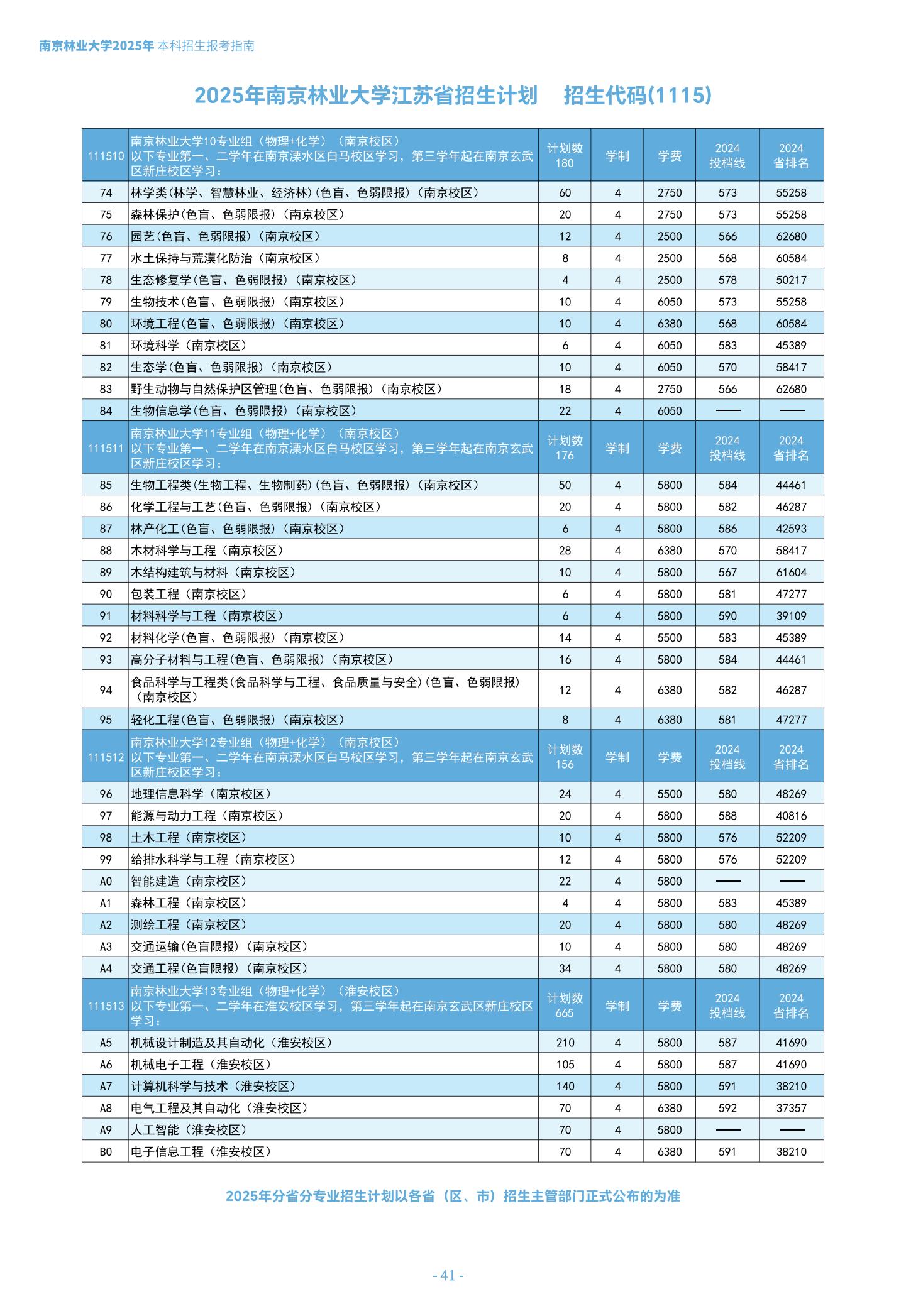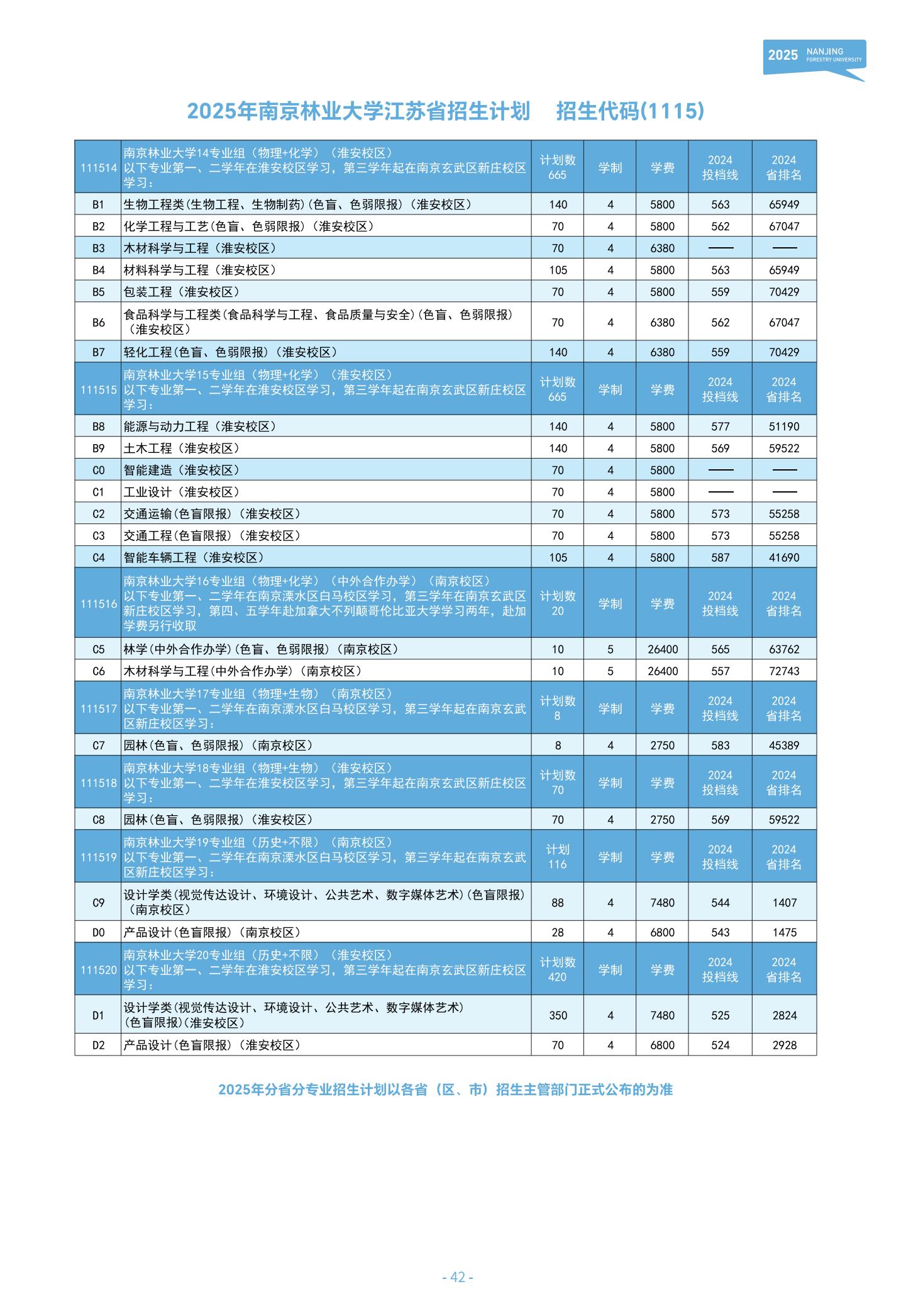 南京林业大学2025年江苏省招生计划
