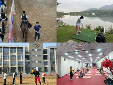 图9:国际名校硕士直通车项目部特色体育选修课(国际马术、水上高尔夫、快乐飞盘、燃脂瑜伽)。