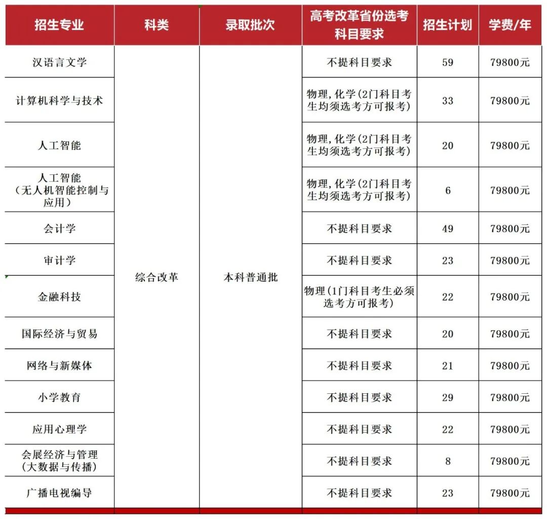 大部分招生专业为不限选考,部分专业物理必选、物理+化学均须选考等多种选科要求,满足了不同考生的学科背景需求。