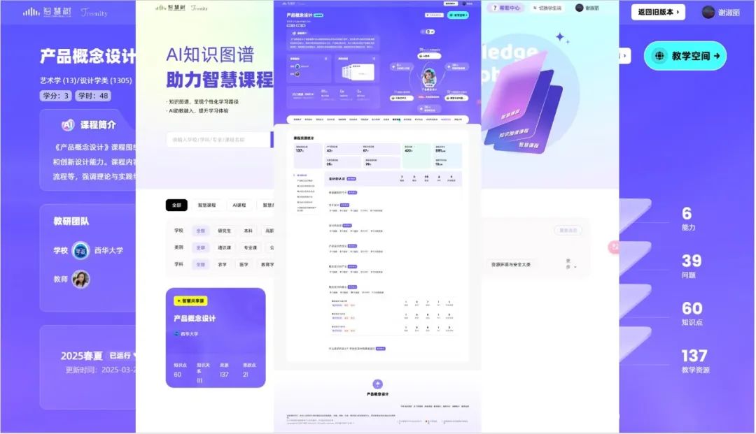专业把握”人工智能+教育“发展机遇,持续深化教育数字化改革,通过AI建设课程知识图谱,体系化梳理人才培养方案、课程教材、视频等资源,融入课程育人要求,构建体系化、结构化、可视化的知识框架,助力学生系统掌握课程的核心知识点,定制个性化学习路径。