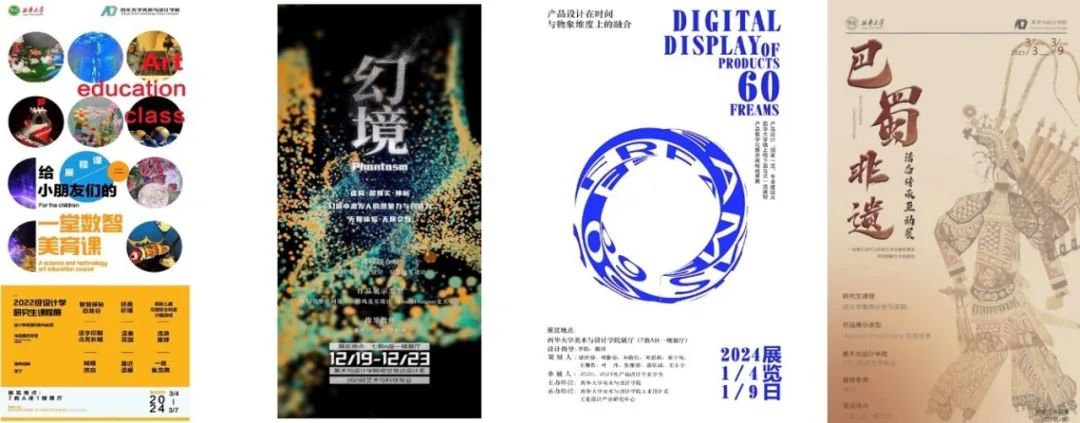 课程展览活动,为学生搭建“智能+设计”实践平台,推进虚实融合的技术智能化教学方式变革。近几年“线上线下”展览已辐射周围近千名大、中、小学生。