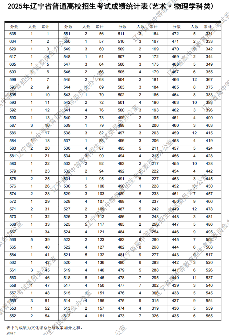 文章来源:辽宁招生考试之窗 2025年辽宁省普通高校招生考试成绩统计表