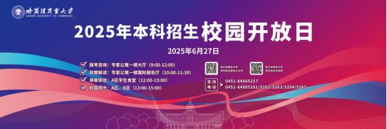 为了让广大考生及家长进一步了解我校办学实力、学科特色、专业优势及录取规则,拓宽双方沟通渠道,帮助考生及家长更好的完成高考志愿填报过程,现决定举办哈尔滨商业大学2025年本科招生校园开放日活动,具体安排如下: