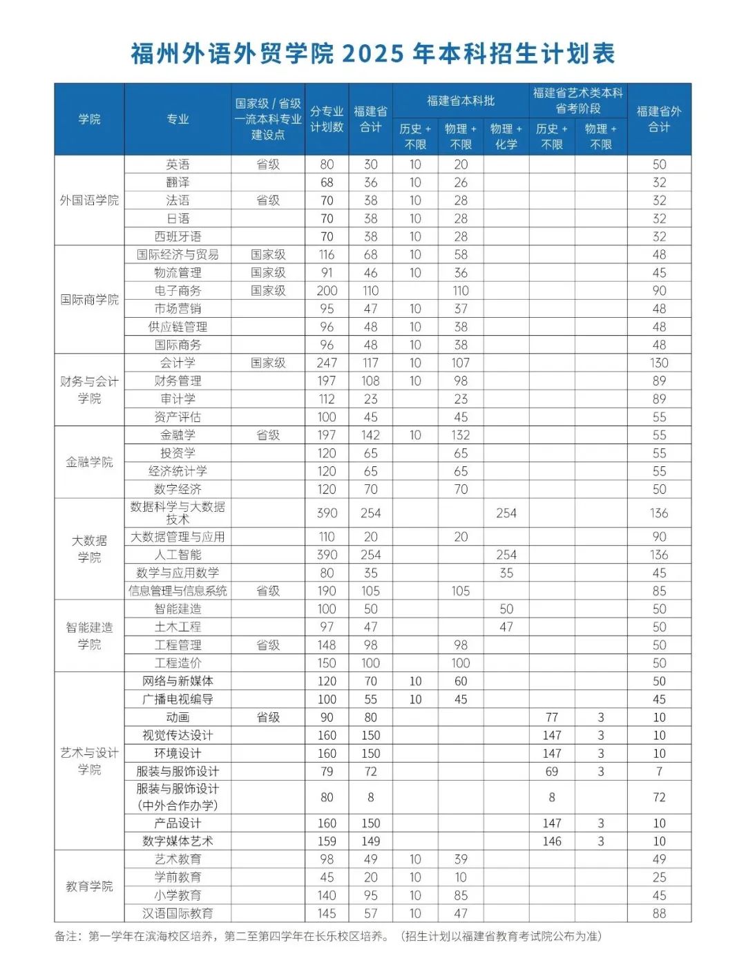 2025年福州外语外贸学院2025年投放41个招生专业,涵盖经、教、文、理、工、管、艺等7个学科门类。面向全国27个省(市、自治区)招生,包含福建、河北、山西、内蒙古、辽宁、吉林、黑龙江、上海、江苏、浙江、安徽、江西、山东、河南、湖北、湖南、广东、广西、海南、重庆、四川、贵州、云南、西藏、陕西、甘肃、宁夏。