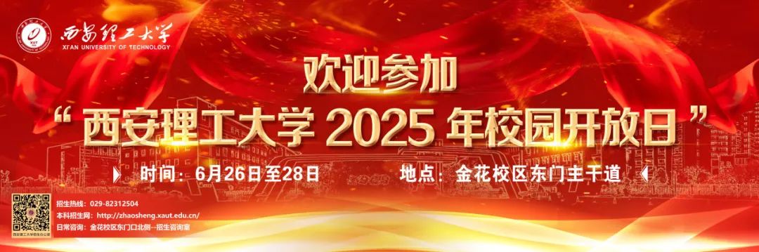 西安理工大学定于2025年6月26日-28日举办“校园开放日暨本科招生咨询会、学生科技作品展、中外合作办学招生宣介”系列活动。