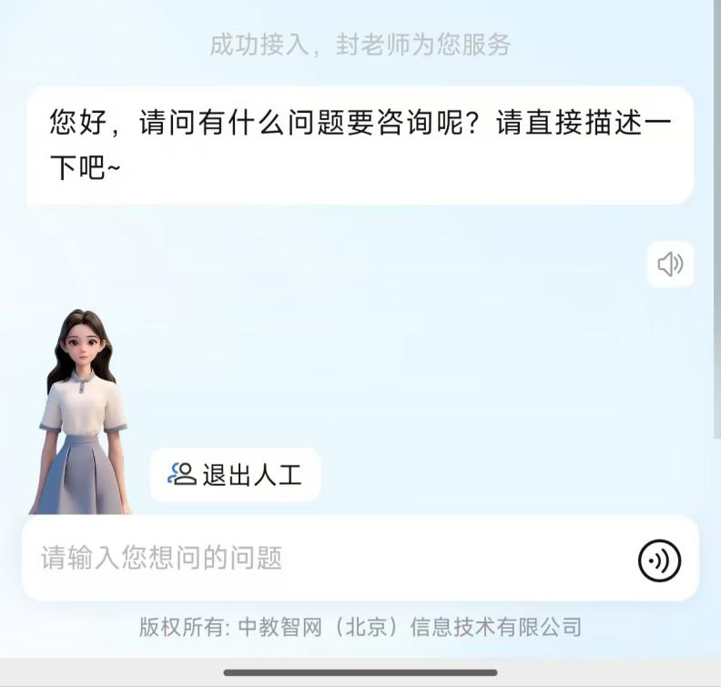 6.点击“在线”老师后,进入咨询界面,输入您的问题,我们的老师将会第一时间为你解答。等待回答期间可以退出该界面,但是请不要关闭浏览器或退出人工咨询。