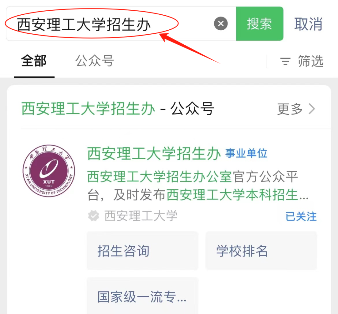 1. 微信搜索【西安理工大学招生办】(也可扫描下方二维码)