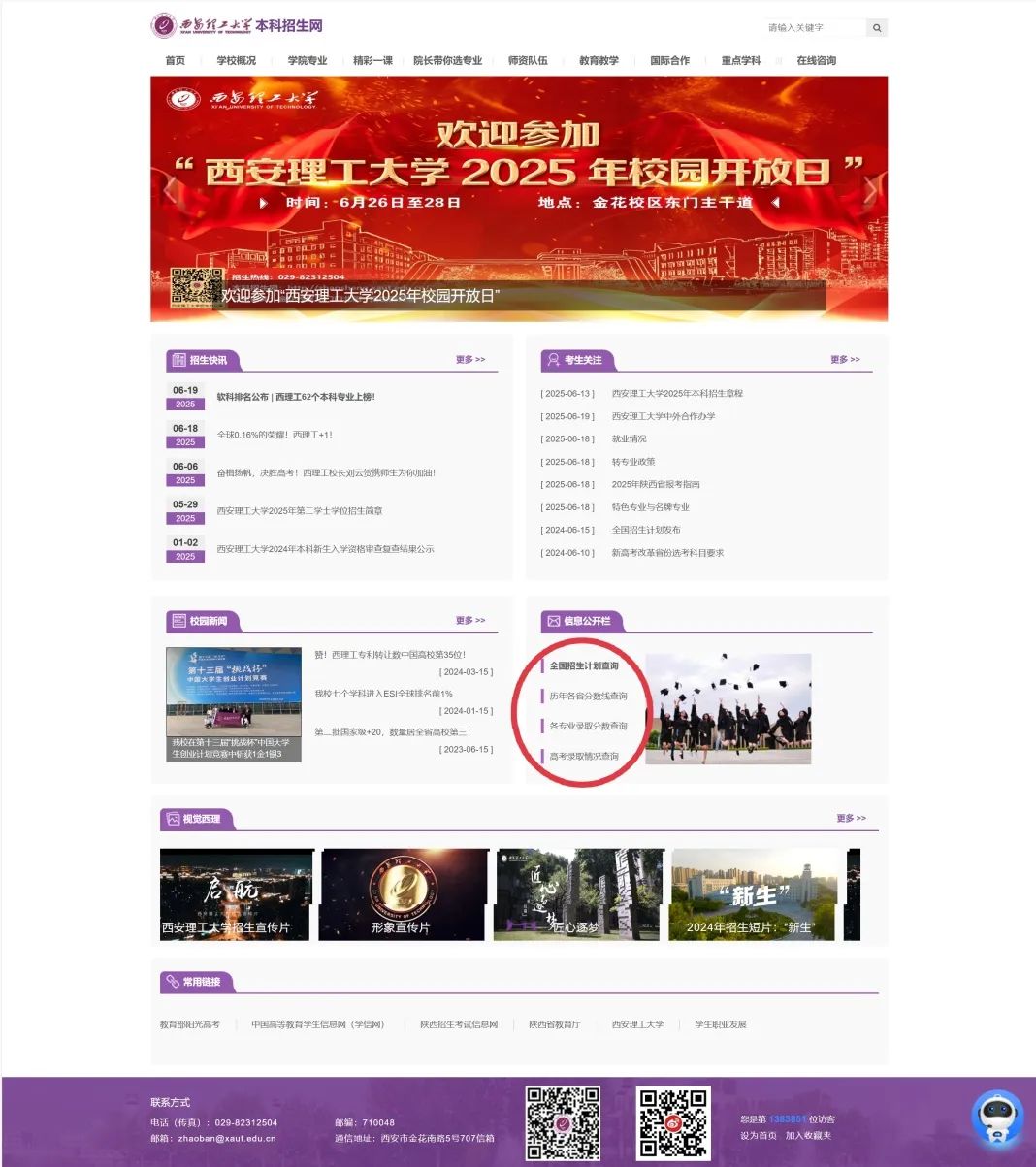 登录西安理工大学本科招生网即可实现招生政策、历年分数、专业介绍、招生快讯等信息的“一站式查询”。
