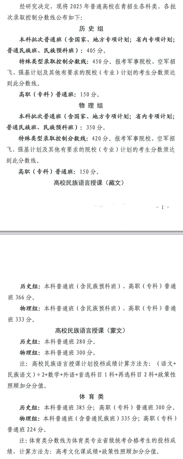 文章来源:青海教育考试网 关于发布2025年普通高等学校在青招生录取控制分数线的通知