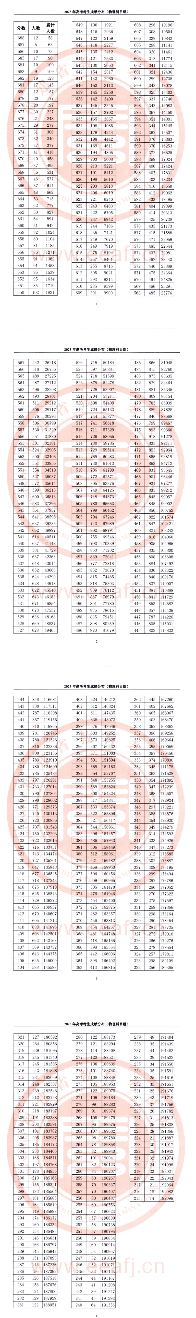 来源:福建教育考试院 2025年高考考生成绩分布(物理科目组)