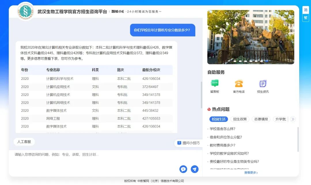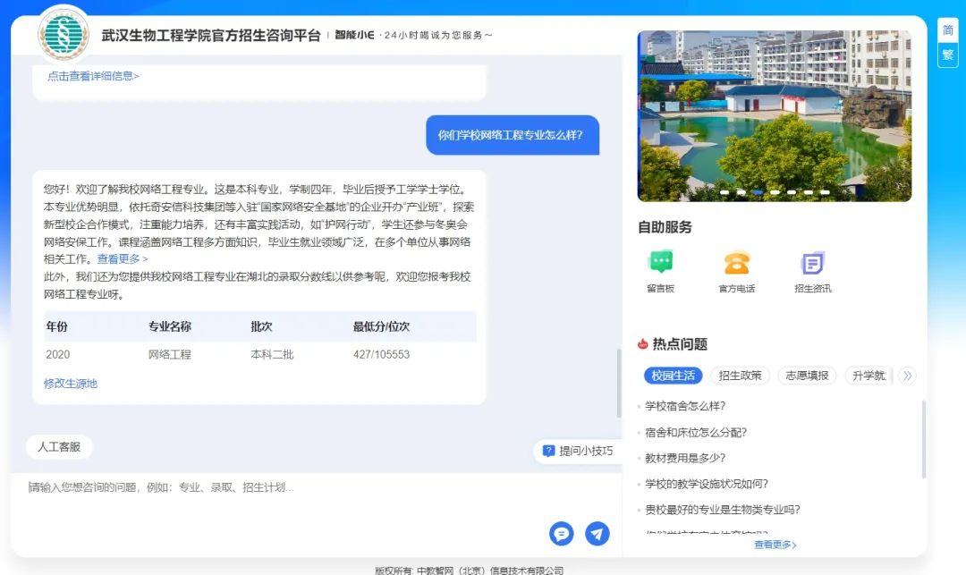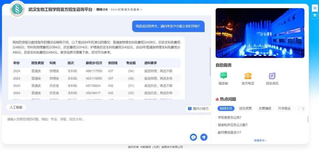 武汉生物工程学院智能招生问答系统