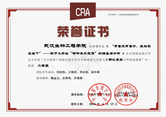 预备党员,2022级金融工程本科1班学生,累计斩获2023“一带一路金砖国家技能发展与技术创新大赛”三等奖、第九届全国大学生人力资源管理综合能力竞赛区域赛一等奖、第十四届全国大学生市场调查与分析大赛湖北赛区三等奖等多项国家级及省级专业赛事荣誉,陆续通过大学英语六级、初级会计师、计算机二级等职业资格认证,并以第一作者身份在学术期刊发表论文。多次荣膺国家奖学金、校五好学生标兵、优秀团员、优秀团干部等荣誉称号,展现多维度成长素养。