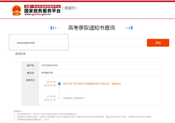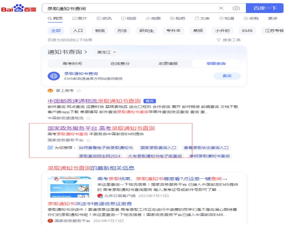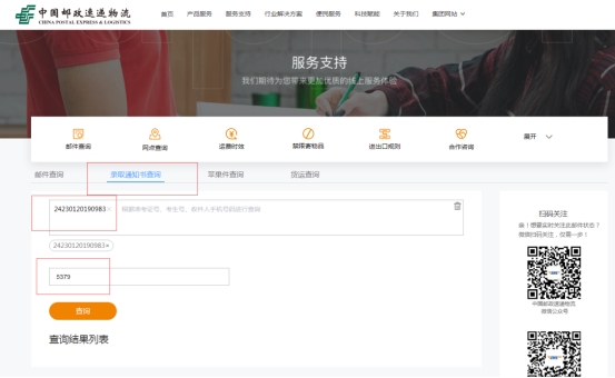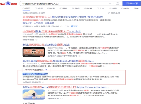 二、点击进入 https://www.ems.com.cn/queryList,点击 “录取通知书查询”,输入学生14为考生号和学生电话后四位,点击“查询”。