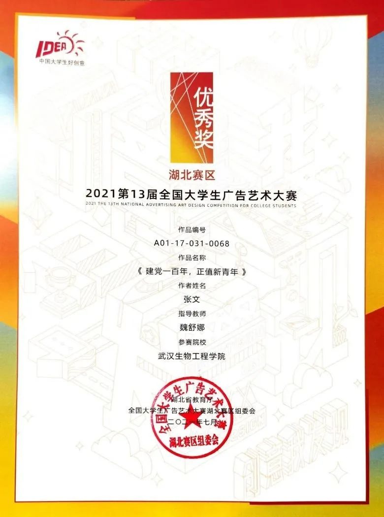 学院师生在国家级赛事第13届全国大学生广告艺术大赛中获得优异成绩,入围、优秀奖获奖十余项。