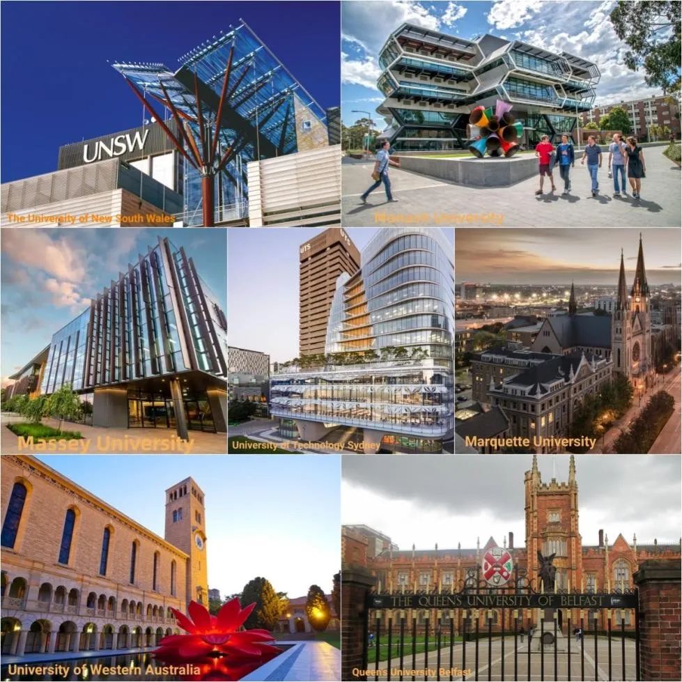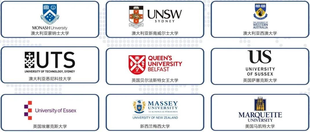 ⚫ 学院依托学校丰富的国际教育资源和良好的办学条件,采取与国际接轨的教学模式,引进国外合作高校优质的教学资源、先进的课程体系和经典的原版教材,采用中外学分互认联合培养模式,与澳大利亚新南威尔士大学、澳大利亚蒙纳士大学、澳大利亚西澳大学、英国贝尔法斯特女王大学、英国拉夫堡大学、新西兰梅西大学、美国马凯特大学等世界一流高校合作,共同培养本科生和研究生。