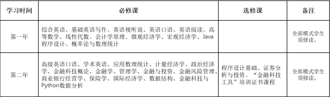 备注:以上专业课除概率论、政治经济学、戏剧欣赏和历史课程外,其余专业课均使用英文参考书及教学材料,全英/双语授课,英语考核;各专业课程以学校2025级相应人才培养方案为准。