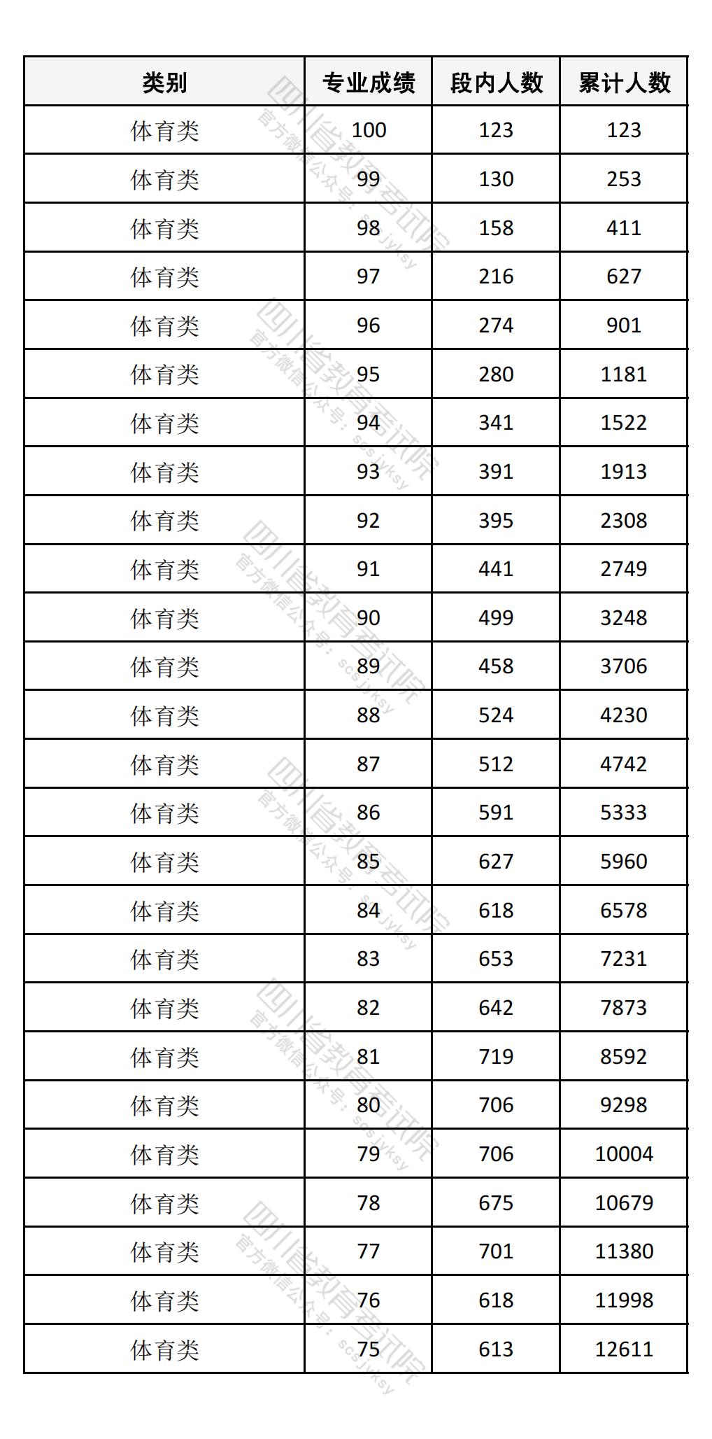 文章来源:四川教育考试院 四川省2025年普通高校招生本科艺术类综合成绩、体育类专业成绩分段统计表