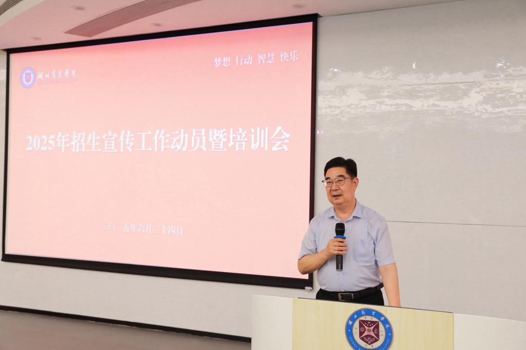 会上,校长钱建国强调了招生工作对于学校发展的重要性,本次会议既是一次战前动员,也是一次能力提升,更是一次责任压实。他从学校办学规模、办学质量两个方面回顾了近年来学校的招生成果,并对2025年的招生工作提出了四点要求:一是提高站位,全员行动,凝聚招生最强合力;二是深挖“家底”,精准推介,讲好湖商精彩故事;三是用心用情,专业服务,展现湖商人良好形象;四是严守纪律,规范操作,确保招生工作阳光、透明。