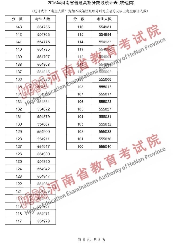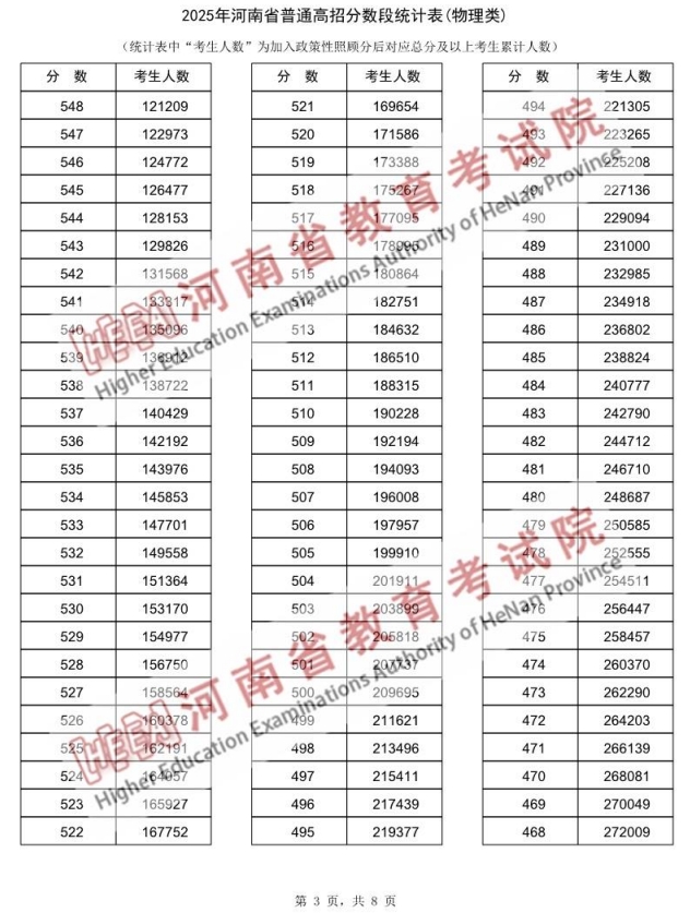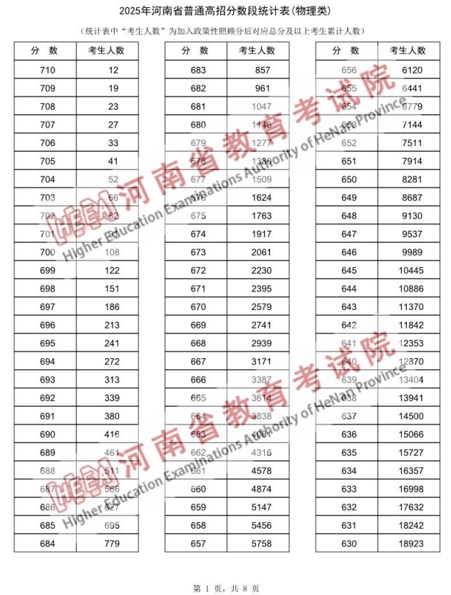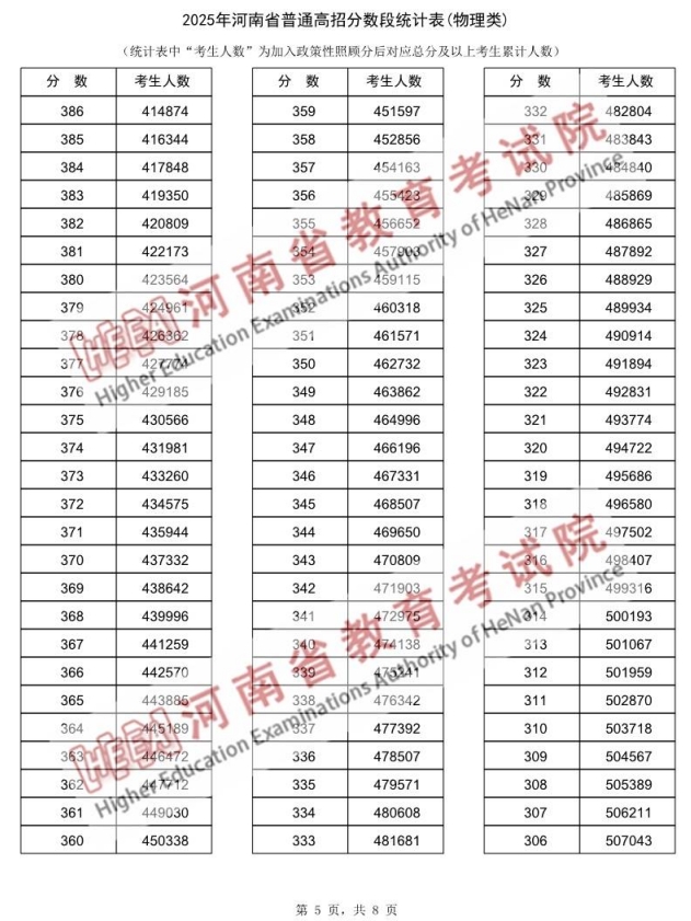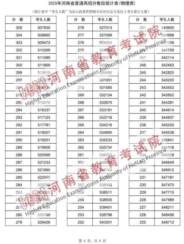 文章来源:河南教育考试院 2025年河南省普通高招分数段统计表