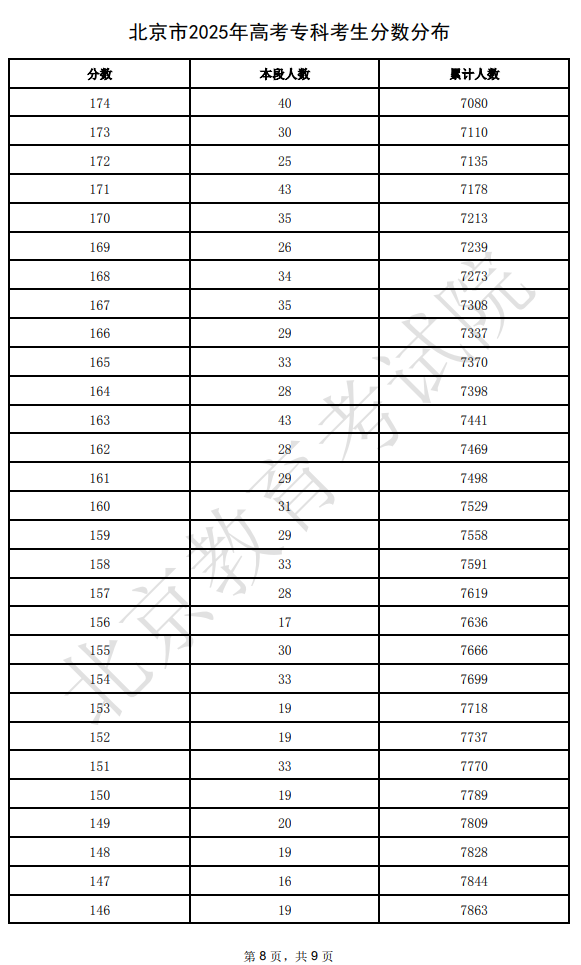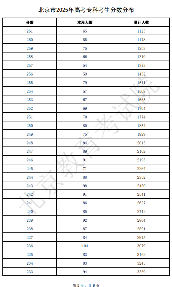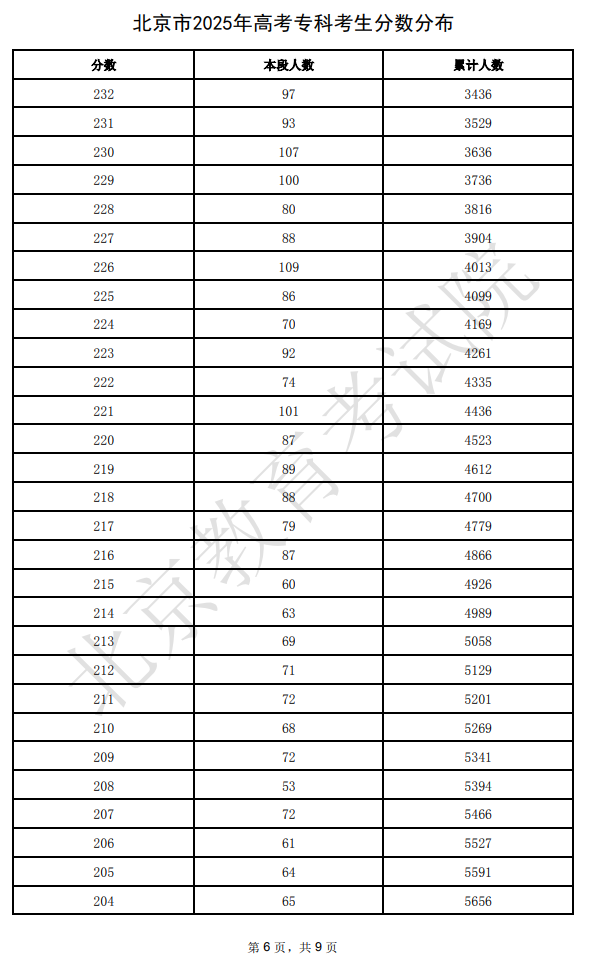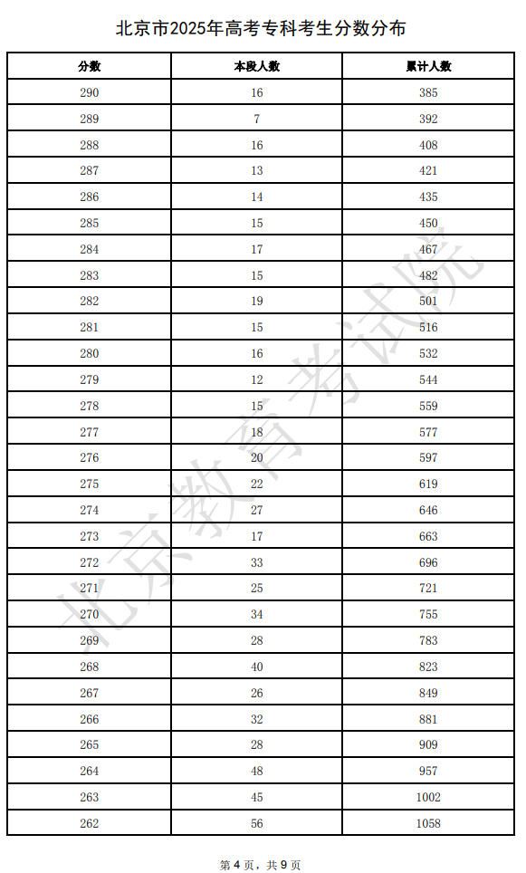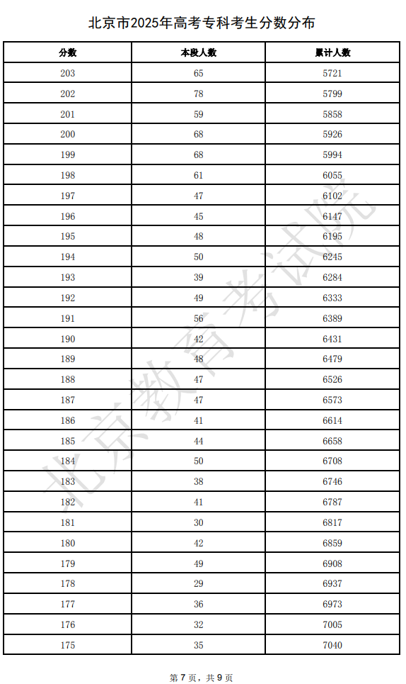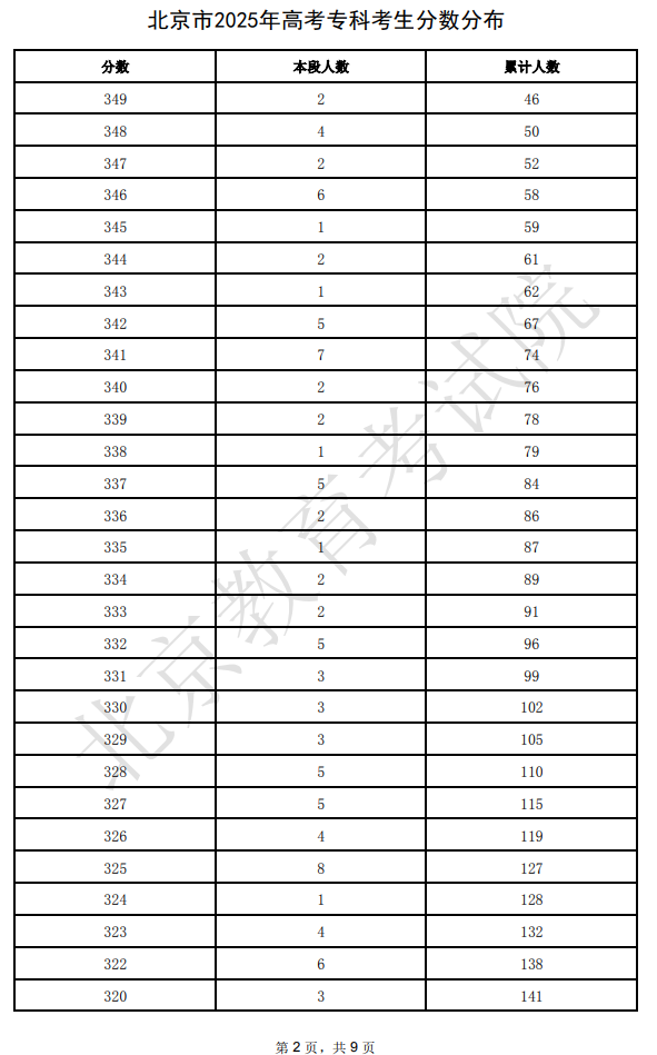 来源:北京教育考试院 北京市2025年高考考生分数分布