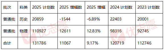 结论:招生计划整体扩容,但物理类占比进一步扩大,历史类缩招。